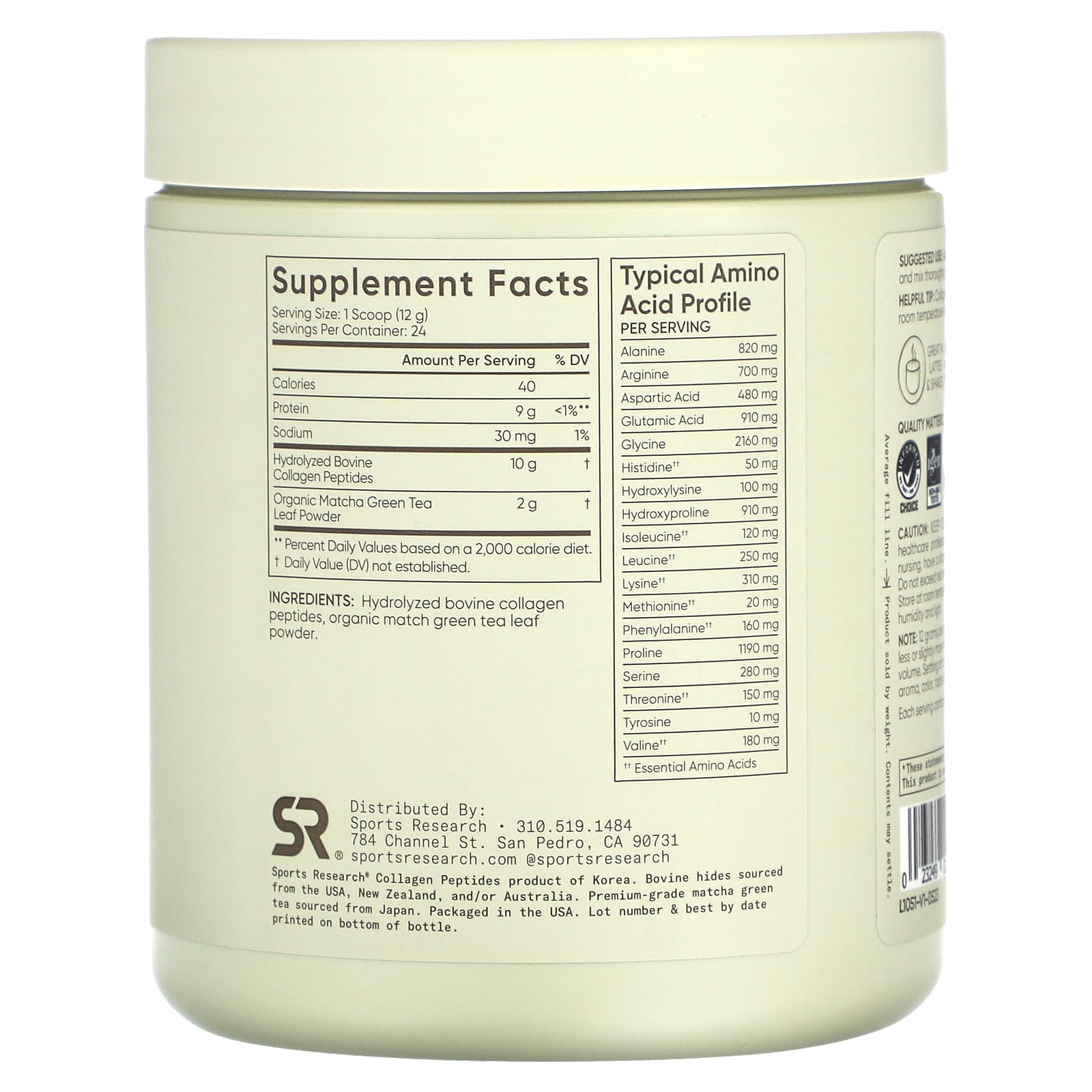Sports Research Peptídeos de Colágeno Matcha 288 g (102 oz)