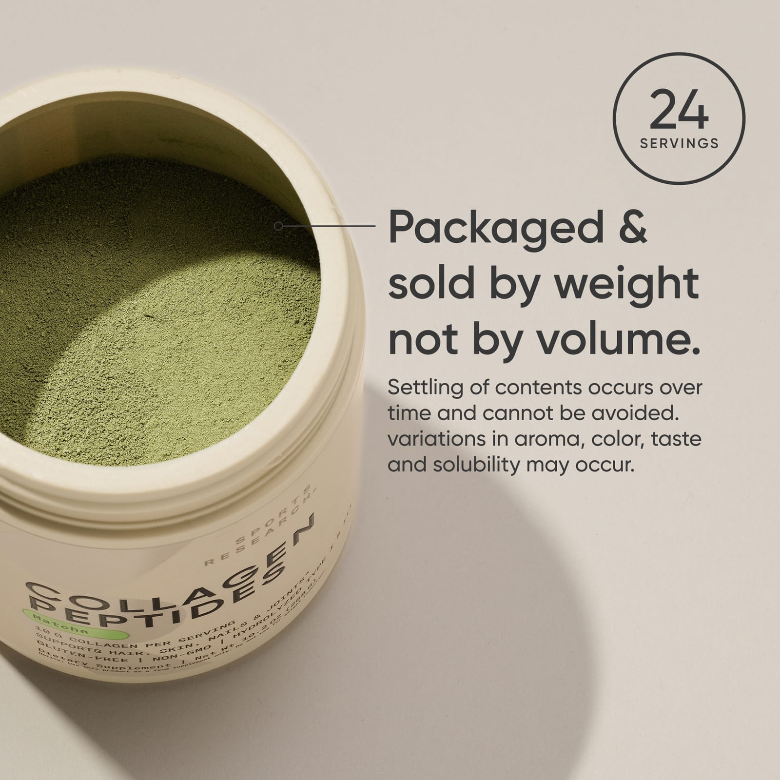 Sports Research Peptídeos de Colágeno Matcha 288 g (102 oz) – Sports Research Suplementos Ossos, Articulações e Cartilagem Colágeno, Suplementos.