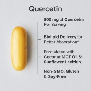 O suplemento de quercetina da Sports Research contribui para a atividade antioxidante e a função sazonal do sistema imunológico. Apenas uma (1) de nossas cápsulas softgel fornece 500 mg de quercetina, promovendo a atividade antioxidante e um suporte imunológico à saúde.