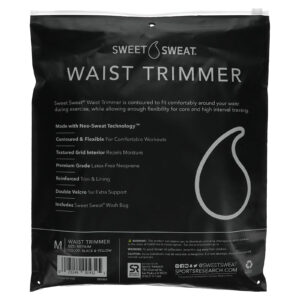 O Aparador de Cintura Sweet Sweat® é contornado para se encaixar confortavelmente ao redor da cintura durante exercícios, permitindo flexibilidade suficiente para treinamentos principais e intervalos altos.
