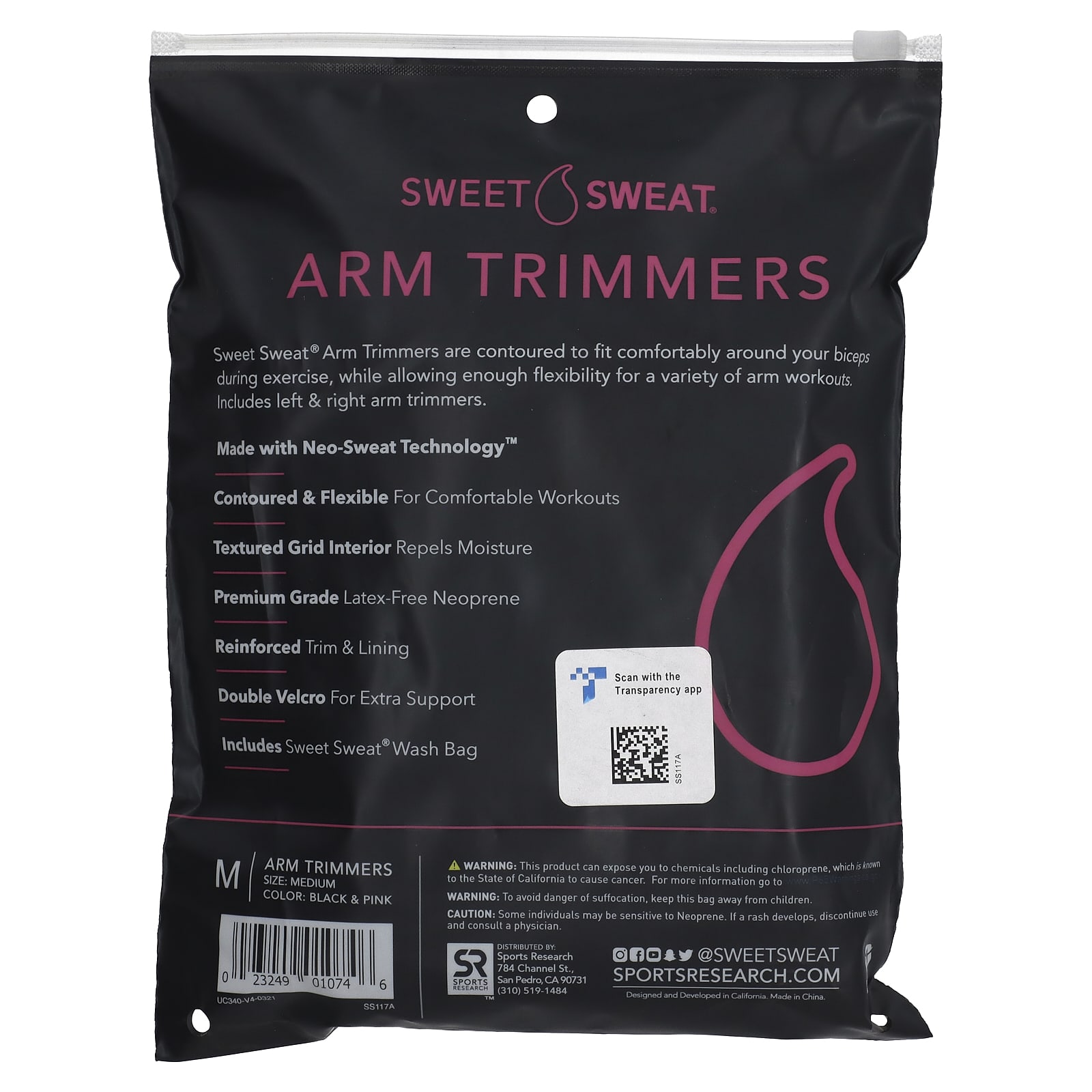 Os Trimmer para Braços da Sweet Sweat® são contornados para se encaixar confortavelmente ao redor do bíceps durante exercícios, permitindo flexibilidade suficiente para uma variedade de treinos para os braços. Inclui aparadores para os braços esquerdo e direito.
