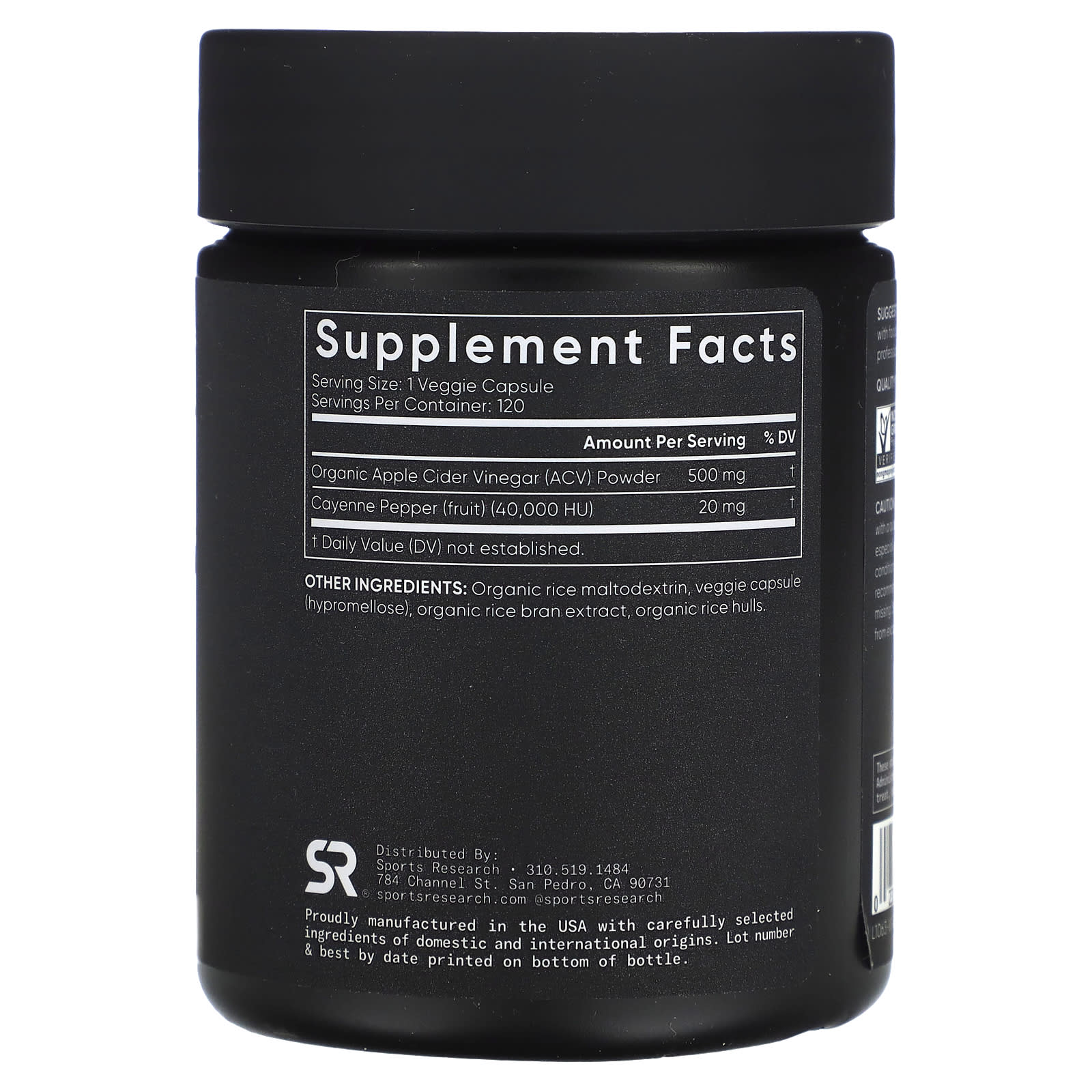 Sports Research Vinagre de Maçã com Pimenta Caiena 520 mg 120 Cápsulas Vegetais – Sports Research Suplementos Controle de peso Vinagre de maçã.