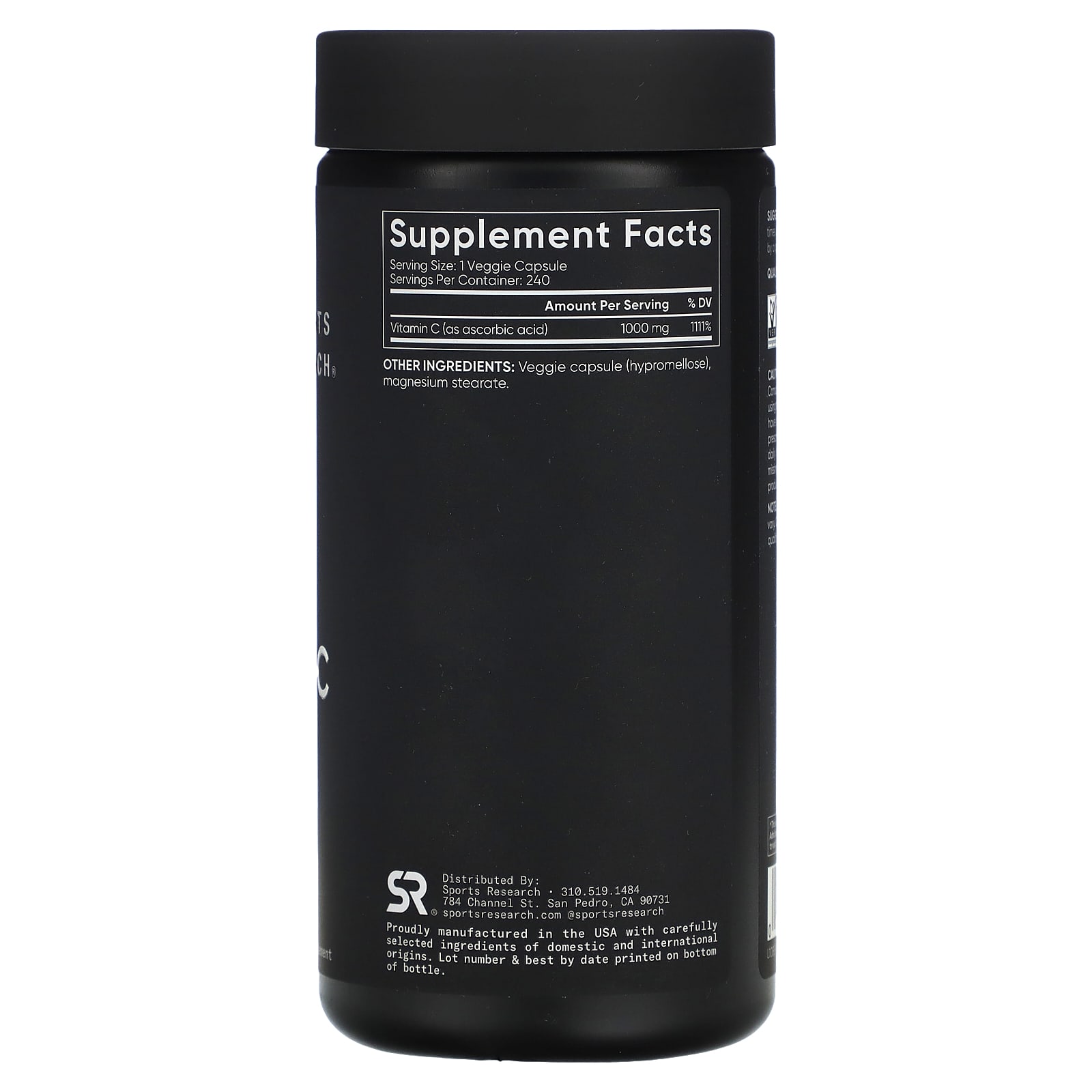 Sports Research Vitamina C de Alta Potência 1.000 mg 240 Cápsulas Vegetais – Sports Research Suplementos Vitaminas Vitamina C Ácido ascórbico Nutrição Esportiva Suplementos Esportivos.