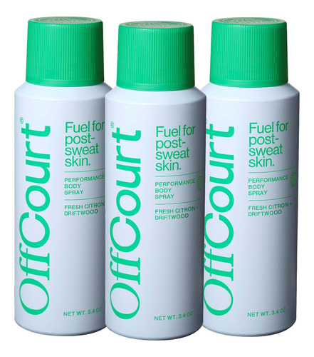 OffCourt – Spray corporal desodorante natural para homens e mulheres – Sem alumínio – Desodorante corporal para mulheres e homens – Aroma fresco de frutas cítricas e troncos, 3,4 onças (pacote com 3) – Combate o odor na origem com o spray corporal OffCourt para homens e mulheres, formulado com prebióticos para equilibrar o odor ao longo do tempo e 3 ingredientes desodorizantes que ajudam a eliminar o odor ao absorvê-lo; ao contrário de outros sprays corporais formas que tentam, e não conseguem, encobrir tudo — não estragam suas roupas: use este desodorante em spray debaixo dos braços como desodorizante ou em todo o corpo como sua fragrância diária; você não se preocupe com o fato de o OffCourt deixar para trás qualquer resíduo branco e pegajoso, como outros desodorantes – aroma leve e cítrico: este não é o spray corporal de sua adolescência; aplique generosamente o spray corporal masculino OffCourt, com um aroma fresco de limão e madeira flutuante que dura de 4 a 6 horas e é um ótimo perfume unissex para homens e mulheres ativos; a fragrância inclui notas de limão e toranja, maçã verde e cedro — Ingredientes naturais que funcionam: a fórmula de desodorante em spray corporal sem alumínio da OffCourt não é tóxica, vegana e livre de crueldade; OffCourt não se destina a pele sensível, pois incluímos fragrâncias e álcool que podem irritar peles sensíveis — Satisfação garantida: fabricado nos EUA; temos certeza de que você adorará seu sabonete esfoliante, mas se não gostar, entre em contato conosco e teremos o prazer de reembolsar sua compra integral ou substituir o sabonete, de sua escolha