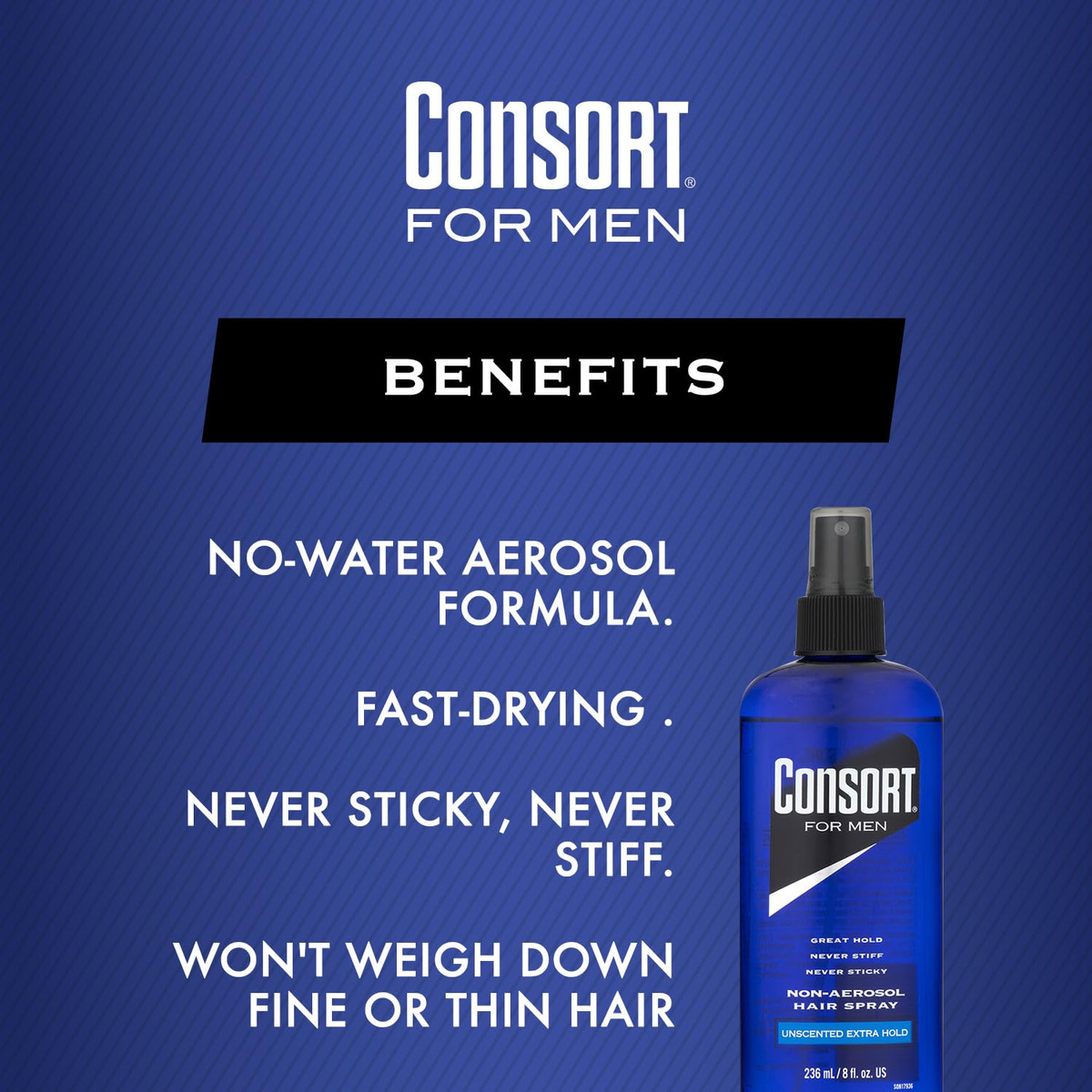 Bomba de spray de cabelo Consort Extra Hold Non-Aero, sem perfume, 8 onças – Este produto é fabricado nos Estados Unidos – Este produto é fácil de usar – Bomba de retenção extra sem perfume Consort Hair Spray de 8 onças sem perfume Non-Aero (236 ml)
