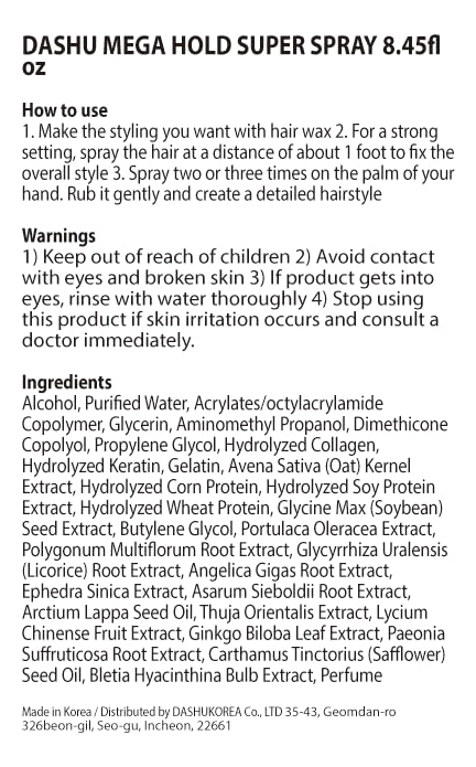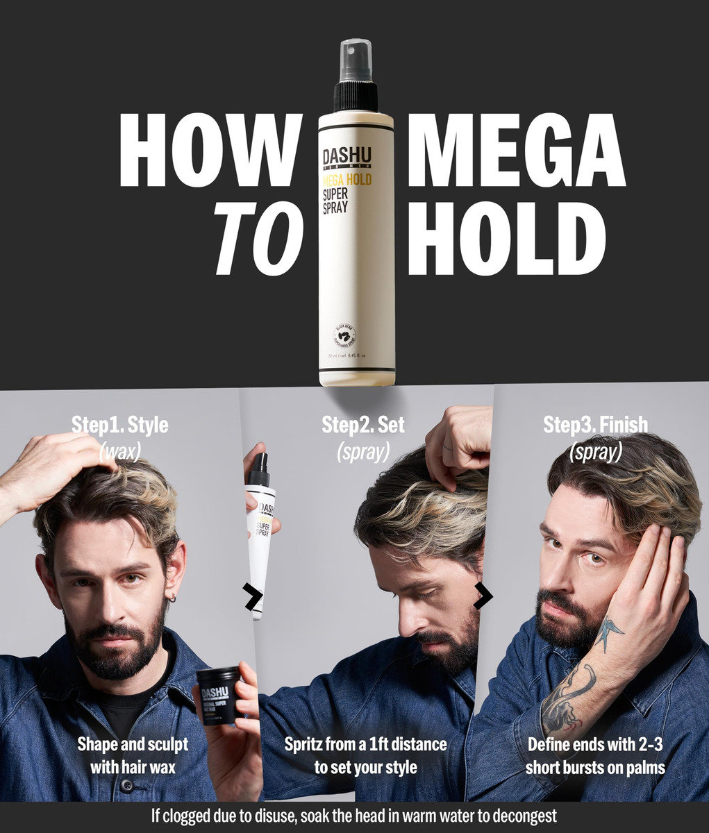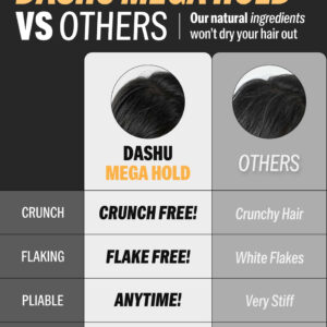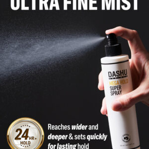 DASHU Premium Mega Hold Super Spray de 8,45 ml de fixação extra forte, prevenção do ressecamento, ingredientes totalmente naturais – retenção duradoura. O Super Spray DASHU Mega Hold foi projetado para fornecer uma fixação extra forte que pode durar mais de 24 horas sem descamar ou ficar pegajoso – VERSATILIDADE. Este spray pode ser usado para uma ampla variedade de necessidades de modelagem de cabelo, desde criar uma aparência elegante e polida até adicionar textura e volume – RESISTENTE ÀS INTEMPÉRIES, A fórmula de fixação forte deste spray pode ajudar a manter seu penteado no lugar mesmo em condições climáticas úmidas ou ventosas – FÁCIL DE LAVAR FORA. Apesar de sua longa duração, esse spray geralmente é fácil de lavar com xampu normal, o que o torna uma escolha conveniente para uso diário