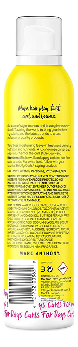 Spray de cabelo encaracolado Marc Anthony, Strictly Curls — Curl Booster remove o frizz, repele a umidade e mantém os cachos elásticos — Vitamina E e seda hidrolisada, dá elasticidade e volume — 8,1 fl oz — Spray intensificador Strictly Curls Curl: se você quer dar um impulso aos seus cachos, aqui está! O Curl Booster é enriquecido com seda hidrolisada e vitamina E. A fórmula leve é conhecida por definir os cachos e evitar a umidade, trazendo elasticidade e fixação. Nunca pegajosa ou escamosa, apenas incrível. 8,1 onças — Cachos por dias: a coleção Strictly Curls da Marc Anthony foi criada com ingredientes hidratantes, como proteínas de seda e manteiga de karité, para desfrisar, desembaraçar e domar até mesmo os cachos mais indisciplinados, deixando seus cachos naturais escorrerem soltos. Strictly Curls ajudará você a tirar mais proveito de seus cachos. – Como usar: Pulverize uniformemente nos cabelos úmidos da raiz às pontas. Para criar cachos em espiral, gire suavemente pequenas seções aleatórias com os dedos, mas não as puxe. Seque naturalmente ou use um difusor. O Curl Booster Spray também pode ser usado como produto de acabamento para fixar os cachos após o penteado. Depois de modelar com os produtos Strictly Curls, borrife levemente o cabelo com o Curl Booster para garantir seu estilo e realçar o brilho. – Inovação infinita no cuidado do cabelo: a equipe de estilistas e amantes da beleza de Marc Anthony nunca fica parada, viajando pelo mundo para trazer os melhores ingredientes para criar produtos de qualidade profissional. Sem parabenos, sem SLS, sem sulfato e sem ftalatos. – Verdadeiros especialistas em cabelo: o cabelo não precisa ser complicado. A missão de Marc Anthony é facilitar seu cabelo com produtos premium e infalíveis a um preço acessível. Todos os estilos. Toda a diversão. Fazemos o que é preciso para tornar possível o cabelo brincar.