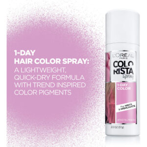 Spray de 1 dia LoRal Paris Hair Color Colorista, rosa pastel, 2 onças — Para todos os tipos e cores de cabelo — Cor temporária do cabelo com pigmentos puros — Aplicação rápida do spray — Sem necessidade de alvejante — Sem amônia, sem peróxido