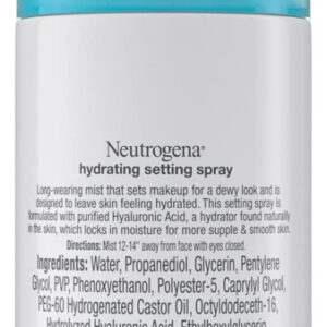 Spray hidratante de maquiagem Neutrogena Hydro Boost com ácido hialurônico, névoa facial fixadora de maquiagem de longa duração para pele macia, brilhante e úmida, não comedogênica e hipoalergênica, 3,4 fl. oz – 3,4 onças fluidas de spray hidratante de maquiagem Neutrogena Hydro Boost com ácido hialurônico para uma pele brilhante e macia — Esta névoa fixadora de maquiagem de longa duração não é comedogênico e hipoalergênico e ajuda a definir sua maquiagem para uma aparência úmida, deixando a pele hidratada e fresca. A névoa facial é formulada com ácido hialurônico purificado, um hidratante encontrado naturalmente na pele que retém a umidade para uma pele mais suave e macia – Adequado para sua rotina diária de beleza e cuidados com a pele, use este spray fixador facial após aplicar sua maquiagem. Borrife de 12 a 14 polegadas de distância do rosto para obter uma maquiagem brilhante que permanece firme no lugar — Combine a névoa com outros produtos para a pele com ácido hialurônico da coleção Neutrogena Hydro Boost, que inclui hidratantes faciais hidratantes, produtos de limpeza, creme para as mãos e creme para gel corporal