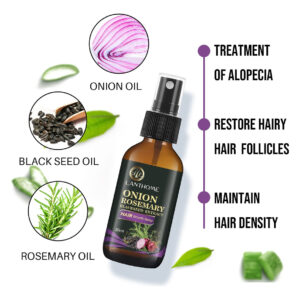 Spray de crescimento capilar: é enriquecido com cebola roxa, a semente preta extrai nutrientes essenciais para promover o crescimento do cabelo, evita a queda do cabelo, infecções do couro cabeludo e nutre os folículos, aumenta o volume, o brilho e fortalece os cabelos. – Spray de crescimento capilar: é enriquecido com cebola roxa, a semente preta extrai nutrientes essenciais para promover o crescimento do cabelo, evita a queda do cabelo, infecções do couro cabeludo e nutre os folículos, aumenta o volume, o brilho e fortalece os cabelos. – Spray de crescimento de cabelo de cebola vermelha: é enriquecido com óleo de extrato de cebola roxa que promove o crescimento do cabelo, apoia o cabelo saudável, controla a caspa, reduz a queda de cabelo e mantém cabelos longos, lustrosos e brilhantes. – Spray de cebola para o crescimento do cabelo: uma fórmula fortificante e rica em nutrientes, que ajuda a estimular os folículos pilosos, alongar e fortalecer o cabelo enquanto retarda o envelhecimento, reduz a queda de cabelo e hidrata o couro cabeludo seco para aliviar a caspa. – Óleo de semente preta: hidrata os folículos pilosos e fornece nutrientes essenciais que reparam pontas duplas e quebradiças cabelo, ajuda a prevenir a queda de cabelo, fortalece os folículos e condiciona o couro cabeludo, resultando em cabelos brilhantes, sem frizz e manejáveis. – Óleo de cebola para spray de crescimento capilar Uso: O spray de 1 a 2 bombeia o spray de crescimento capilar para o couro cabeludo da área afetada, massageie suavemente o couro cabeludo e deixe-o durante a noite ou por algumas horas. Lave com água morna com xampu e condicionador em caso de cabelos e couro cabeludo oleosos.