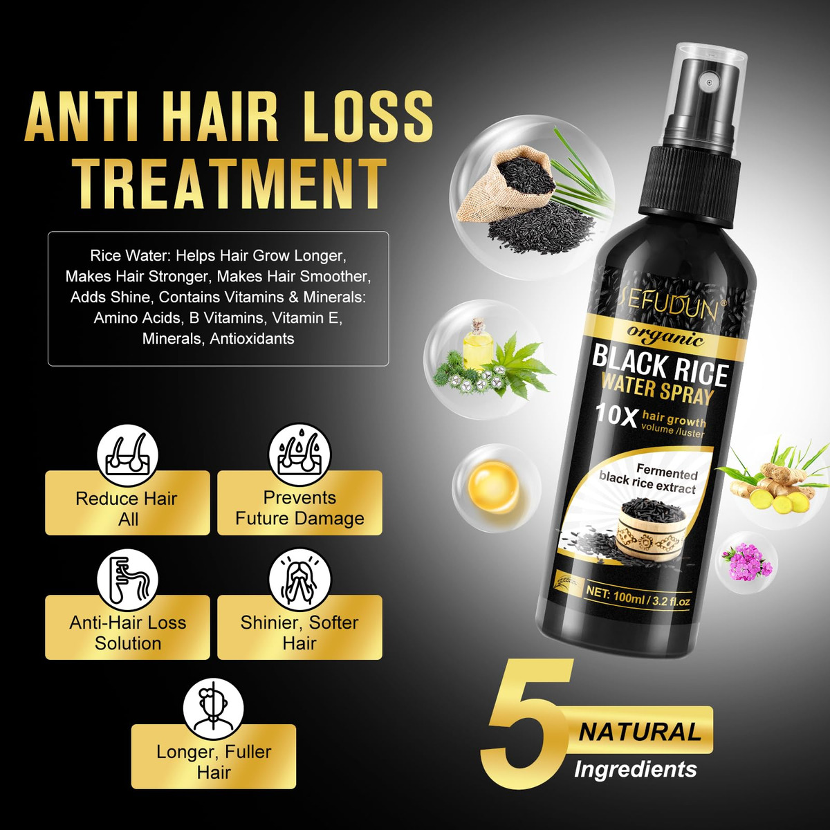 Revitalize e fortaleça seu cabelo com nosso spray de crescimento capilar, enriquecido com ingredientes naturais como água de arroz, gengibre e extrato de semente de arroz preto. Combata a queda de cabelo de forma eficaz com adições potentes, como óleo de rícino, biotina e extrato de raiz de gengibre. Suave e segura, nossa fórmula é livre de parabenos, sulfatos e aditivos nocivos. Adequado para todos os tipos de cabelo, é a solução ideal para cabelos mais saudáveis e cheios. Basta aplicar 2 a 4 sprays ou conforme suas necessidades para cabelos visivelmente mais grossos, cheios e saudáveis – Revitalize o cabelo naturalmente: infundido com água de arroz, gengibre e extrato de semente de arroz preto, nosso spray de crescimento capilar revitaliza o cabelo, melhora a elasticidade e restaura o brilho para cabelos mais saudáveis e encorpados. – Combate a queda de cabelo de forma eficaz: com ingredientes potentes como óleo de mamona, biotina e extrato de raiz de gengibre, nossa fórmula estimula o crescimento da raiz do cabelo, repara pontas duplas e evita quebras, o que é clinicamente comprovado por promover o crescimento em homens e mulheres. – Suave e Formulação segura: priorizando seu bem-estar, nosso spray de água de arroz é livre de parabenos, sulfatos e aditivos nocivos, sem crueldade, sem glúten e sem fragrâncias, proveniente de ambientes naturais para máxima eficácia. – Solução universal para cabelos: adequado para todos os tipos de cabelo, incluindo cabelos normais, finos, tratados com cores, encaracolados ou étnicos, nosso spray de crescimento capilar oferece uma solução versátil e saudável para quem busca aprimorar seus saúde e aparência do cabelo. – Aplicação simples: basta pulverizar 2 a 4 bombas no couro cabeludo, massagear suavemente e deixar agir por 30 minutos ou durante a noite antes de tomar banho. Experimente um cabelo visivelmente mais espesso, cheio e saudável com facilidade.