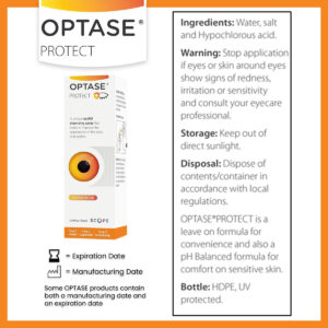 SPRAY LIMPADOR DE PÁLPEBRAS E CÍLIOS SEM CONSERVANTES COM ÁCIDO HIPOCLOROSO OPTASE Protect é um spray de limpeza de pálpebras suave e sem conservantes que limpa e protege para melhorar a aparência dos olhos e das pálpebras. A tecnologia exclusiva e exclusiva da Optase cria um ácido hipocloroso de 99,6% puro e 0,15% que fornece proteção eficaz contra os sintomas do olho seco. O OPTASE Protect atua aprimorando as defesas naturais do corpo para ajudar a proteger contra blefarite, MGD, chiqueiro e outros sintomas de olho seco. O ácido hipocloroso 99,6% puro encontrado no OPTASE Protect oferece uma resposta mais rápida e uma vida útil mais longa, mantendo um equilíbrio de pH suave o suficiente até mesmo para a pele mais sensível. SPRAY PARA OS OLHOS DIÁRIO DE LONGA DURAÇÃO Feito com ingredientes naturais usando tecnologia proprietária, o OPTASE Protect fornece eficácia estável e duradoura para a limpeza das pálpebras. O OPTASE Protect é suave e confortável na pele sensível ao redor das pálpebras e cílios, sem a irritação ou sensação de picada encontrada nos limpadores artificiais de pálpebras. Para usar, basta pulverizar uma bomba de OPTASE Protect em cada pálpebra duas vezes por dia, de manhã e à noite. Depois de pulverizado nas pálpebras, deixe secar naturalmente e não limpe. O OPTASE Protect é seguro e eficaz por até 12 meses, fornecendo valor e estabilidade para cuidados oftalmológicos de longo prazo. A proteção natural e sem conservantes do ácido hipocloroso puro é segura para crianças e adultos, proporcionando alívio eficaz dos sintomas do olho seco para pacientes de todas as idades. ALÍVIO DE OLHOS SECOS RECOMENDADO PELO MÉDICO Para obter melhores resultados, use o OPTASE Protect como parte de todo o regime de cuidados oftalmológicos recomendado por especialistas e sem conservantes para uma saúde ocular completa. – DEFESA NATURAL E SEM CONSERVANTES: O spray de ácido hipocloroso OPTASE Protect aumenta a defesa natural do corpo para ajudar a resolver os sintomas associados à blefarite, olho seco e outros problemas oculares – PROTEÇÃO RÁPIDA E EFICAZ DAS PÁLPEBRAS: tecnologia proprietária da OPTASE O Protect cria 99,6% de pureza, 0,015% de HOCl, proporcionando um tempo de resposta mais rápido e uma longa vida útil de 12 meses sem agressões subprodutos – LIMPADOR DE OLHOS DE USO DIÁRIO: OPTASE Protect é seguro para uso diário e frequente. Basta borrifar uma bomba em cada pálpebra pela manhã e à noite e deixar secar naturalmente – sem necessidade de enxaguar ou limpar – PH balanceado para maior conforto: o OPTASE Protect é suave e confortável na pele sensível ao redor das pálpebras e cílios, sem a sensação de irritação ou picada encontrada nos limpadores artificiais de pálpebras – ADEQUADO PARA TODAS AS IDADES: A proteção natural e sem conservantes de ácido hipocloroso 99,6% puro é segura para crianças e adultos, fornecendo alívio eficaz dos sintomas do olho seco para todas as idades