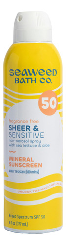Seaweed Bath Co. Spray protetor solar Sheer Mineral Sensitive SPF 50 de amplo espectro, 6 onças, sem perfume, algas marinhas colhidas de forma sustentável, alface marinha, babosa — Blends in Clear: Sheer & Sensitive SPF 50 é um protetor solar mineral sem fragrância e adequado para a pele que se espalha em branco, mas se mistura perfeitamente para proteção de amplo espectro (UVA/UVB) – Proteção mineral SPF 50: resistente à água por até 80 minutos. Feita com 17% de óxido de zinco não nano, esta fórmula é livre de oxibenzona e octinoxato – Fórmula calmante: alface marinha e aloe nutrem a pele banhada pelo sol. Para todos os tipos de pele, tons e estilos de vida – Feito conscientemente: este SPF adequado para peles sensíveis é certificado pela Leaping Bunny, livre de crueldade, vegano, sem glúten e sem parabenos – Como aplicar: agite bem antes de usar. Aplique generosamente e uniformemente 15 minutos antes da exposição ao sol e reaplique pelo menos a cada duas horas ou após 80 minutos de natação