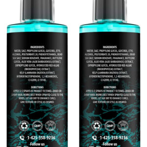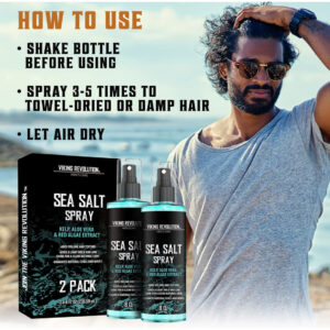 Pacote com 2 sprays de sal marinho Viking Revolution — Refrescante e eficaz — Este refrescante spray de sal marinho masculino levanta e volumiza o cabelo, realça os cachos e ondas naturais e cria uma aparência natural de cabelo de praia com textura. – Aumentador de volume – Use o spray masculino de sal marinho para cabelos como pré-modelador para dar ao cabelo um aumento de volume ou o uso é único para obter uma aparência texturizada e sem esforço. – Ingredientes premium – Este O spray de sal marinho é feito com ingredientes premium para destacar elementos-chave especiais. Os benefícios do sal do Mar Morto por suas propriedades texturizantes exclusivas. Aloe Vera para uma sensação hidratante e calmante. E as propriedades do extrato de algas marinhas e algas vermelhas para um penteado genuíno de surfista. – Formulado para homens – Você não precisa mais usar qualquer produto para cabelo masculino, pois formulamos nosso spray de sal marinho masculino para ser o melhor spray texturizante. Adequado para qualquer homem, desde os homens mais sofisticados até os mais robustos. – The Viking Promise – Se, por algum motivo, você não estiver totalmente satisfeito com nosso spray de sal marinho para homens, basta entrar em contato conosco e cuidaremos de tudo.