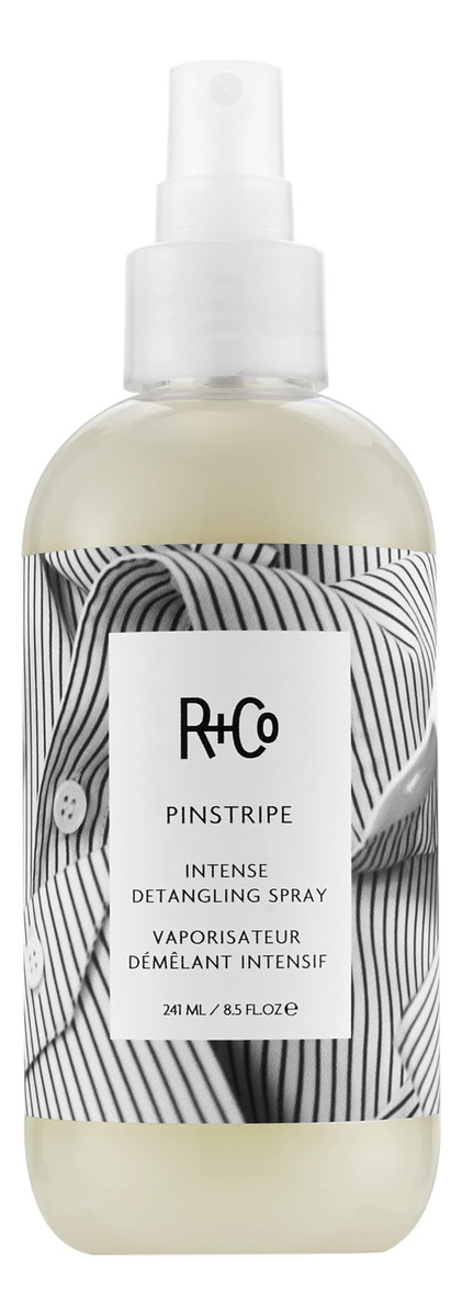 Spray desembaraçante intenso R+Co Pinstripe | Hidratação leve + condiciona + dá brilho | Vegano + Livre de crueldade | 8,5 onças – Oferece condicionamento leve a todas as texturas do cabelo, incluindo cabelos finos – Suaviza eficazmente a cutícula para dar brilho que reflete a luz – Adiciona elasticidade ao cabelo para evitar maiores danos – Protege dos danos UV que podem danificar ainda mais a cutícula