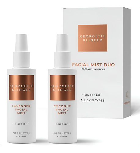 Conjunto de presentes Georgette Klinger Coconut & Lavender Facial Mist Duo Makeup Setting Spray para todos os tipos de pele 4,2 onças