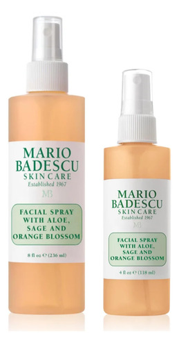Spray facial Mario Badescu com aloe, sálvia e flor de laranjeira para todos os tipos de pele | Névoa facial que hidrata e eleva | Combinação de 8 FL OZ e 4 FL OZ — sem óleo; multiuso; spray facial hidratante e tonificante com flor de laranjeira; reequilibra a sálvia; tomilho clareador; calmante de aloe vera e rico em minerais; extrato de bexiga que suaviza a pele — ESTE HIDRATANTE A Névoa Facial Reabastece instantaneamente, acalma, tonifica, refresca e hidrata a pele, com um efeito clareador para a pele propensa a manchas; a pele fica fresca e úmida — um aroma cítrico revigorante que pode melhorar seu humor com a experiência refrescante de cada aplicação deste spray hidratante facial – COMO USAR – Use o spray facial hidratante no rosto, pescoço ou cabelo conforme necessário; use-o para infundir mais hidratação antes ou depois de aplicar o hidratante para dar à pele um acabamento úmido – #MBSKINTIP – Borrife o pincel ou esponja de maquiagem com o spray facial Mario Badescu e aplique e misture a base e o corretivo; adicione um spray final ao seu rosto para uma pele radiante e úmida