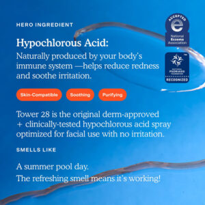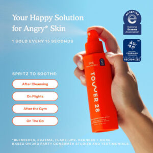 O Tower 28 SOS Rescue Spray é um spray tônico facial calmante, purificador e renovador para vermelhidão, pele irritada e irritada. Alimentado por ácido hipocloroso, esse tônico diário funciona como um spray facial diário que ajuda a acalmar a pele, apoiar a barreira cutânea e evitar os surtos para uma pele limpa e clara. Nosso tônico facial é formulado para uso facial, além de ser seguro para uso em qualquer lugar da pele. Projetado para aliviar a irritação da pele sensível, o spray facial SOS é seguro para todos os tipos de pele. O spray facial Tower 28 SOS tem pH balanceado, sem álcool, sem fragrância, sem óleo, vegano e sem crueldade. Use de manhã e à noite na pele limpa no lugar do tônico para ajudar a aliviar a vermelhidão e a irritação. Você também pode usar este spray para cuidar do rosto conforme necessário ao longo do dia durante a maquiagem, após o treino e para refrescar a pele suada durante o verão. Para aplicar ingredientes ativos em camadas (como retinol, vitamina C), aplique primeiro o spray SOS e deixe secar completamente antes de aplicar os ativos. Combine com nosso SOS Intensive Rescue Serum para obter uma dose dupla de ácido hipocloroso e os melhores resultados. Sua pele vai adorar! – Alívio da pele irritada: este tônico facial com pH balanceado ajuda a acalmar e purificar a pele para aliviar rapidamente a irritação; o tônico facial renovador é seguro para uso em qualquer lugar da pele; tamanho normal para uso prolongado e frequente – Cuidados com a pele superpoderosos: nosso tônico de pele diário usa ácido hipocloroso para ajudar a acalmar a pele, apoiar a barreira cutânea e manter os surtos sob controle; ajuda a reduzir a vermelhidão e a irritação – Projetado para peles sensíveis, fabricado para todos: projetamos produtos de cuidados com a pele que são seguros para todos os tipos de pele, incluindo sensíveis; este spray facial tem a National Eczema Association é um selo de aceitação e não é tóxico, livre de irritantes sensibilizantes, vegano e livre de crueldade – Use quando e onde quiser: borrife seu rosto com nosso spray de ácido hipocloroso a qualquer hora e use-o durante todo o dia sobre maquiagem, após o treino, no calor do verão ou conforme necessário para refrescar a pele entre as lavagens – Como usar: adicione este spray facial Tower 28 à sua rotina de cuidados com a pele de manhã e à noite após a limpeza em local do tônico; pulverize na pele limpa para obter melhores resultados; use para manchas, queimaduras solares, erupções cutâneas, pós-treino e pós-procedimento