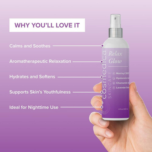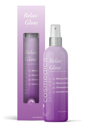 Spray hidratante Cosmedica Skincare Relax Glow Peptide com camomila, extrato de lavanda, Matrixyl 3000 e ácido hialurônico para acalmar a pele, hidratante – 113g