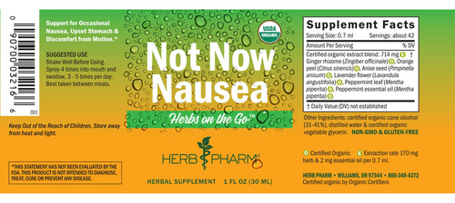 Spray portátil Herb Pharm Herbs on The Go: Not Now Nausea, 1 onça