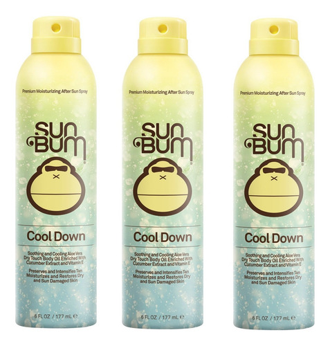 Depois de um longo dia preguiçoso ao sol, sua pele precisa de revitalização e hidratação. O spray contínuo Cool-Down de Aloe Vera da Sun Bum é enriquecido com aloe calmante, extrato de pepino e vitamina E, proporcionando uma hidratação intensa para restaurar suavemente o equilíbrio de umidade natural da pele. A fórmula de toque leve e seco é rapidamente absorvida, deixando a pele suave e macia. Restaura e protege a pele danificada pelo sol, é livre de álcool e glúten, 100% vegano. Evita a descamação para um bronzeado duradouro e vem em uma lata de spray contínuo de 6 fl. oz. (177 ml).