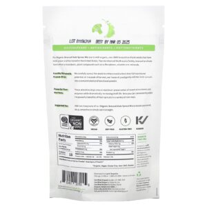 Nossa Mistura de Brotos de Couve e Brócolis Orgânicos começa com sementes de brócolis e couve orgânicas não OGM, que foram cultivadas e colhidas nos Estados Unidos. Dois membros da família Brassica, o brócolis e a couve têm antioxidantes potentes, compostos vegetais como o sulforafano, vitaminas e minerais.