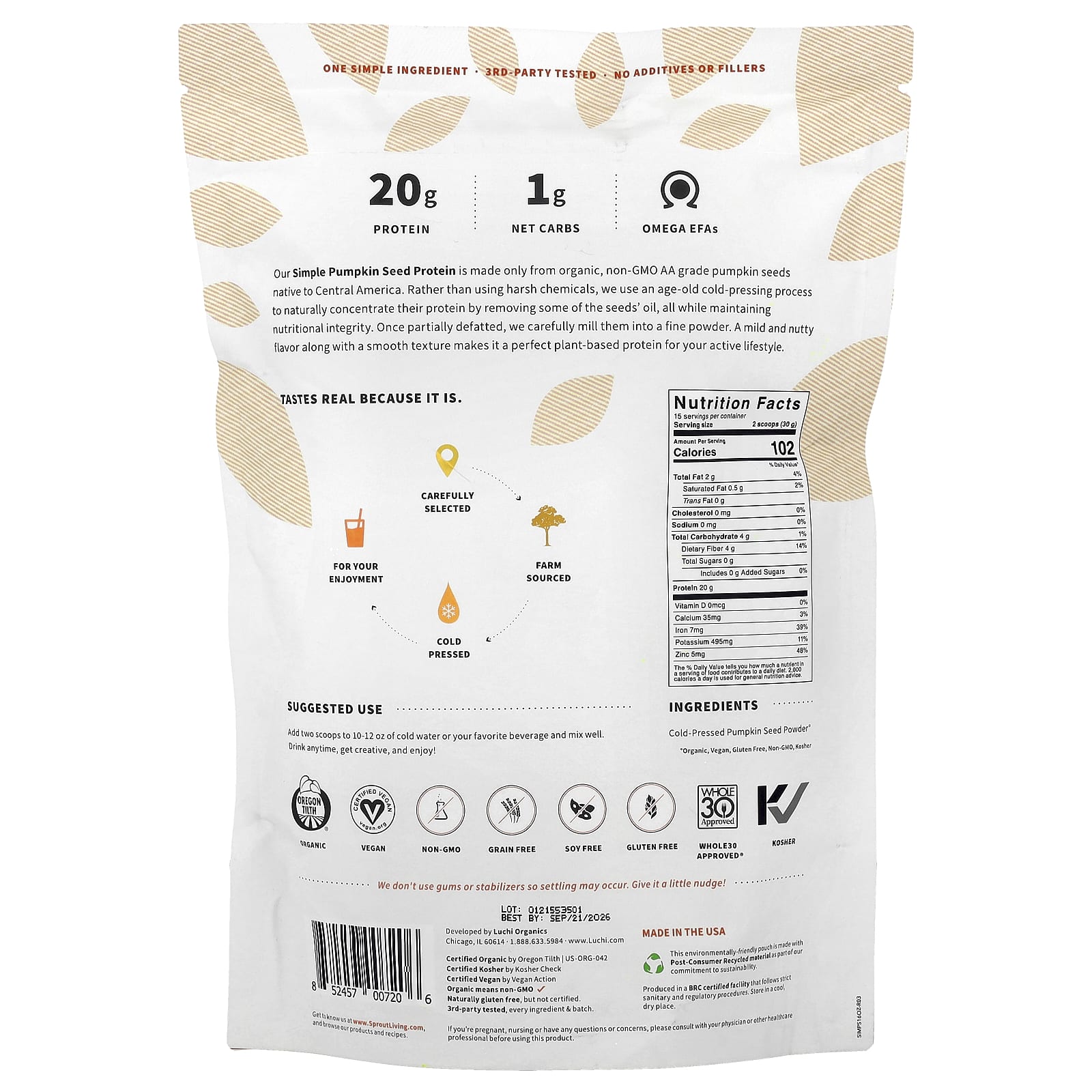 Sprout Living Proteína de Semente de Abóbora Simples 454 g (1 lb)