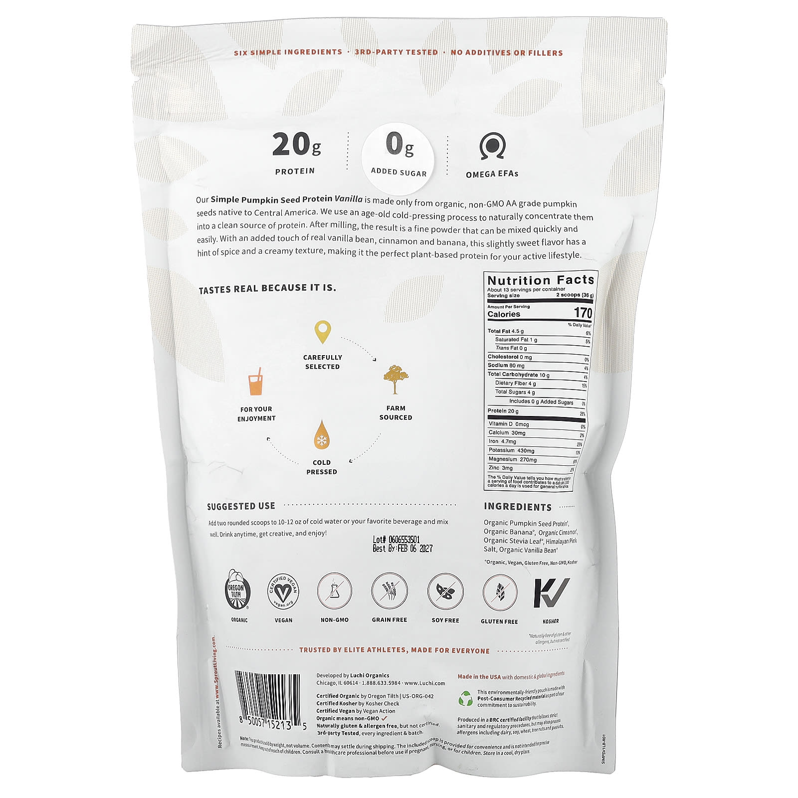 Sprout Living Proteína Simples de Semente de Abóbora Baunilha 454 g (1 lb) – Sprout Living Nutrição Esportiva Proteína Proteína Vegetal.
