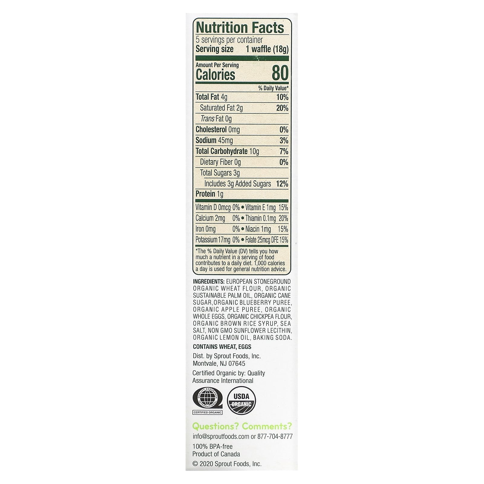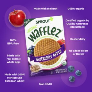 A Sprout reinventou a guloseima belga popular para criar o lanche perfeito para crianças. Cada waffle individual embrulhado feito com farinha de trigo moída orgânica & frutas inteiras misturadas na massa saborosa fornecem uma massa perfeita e saudável & lanche delicioso para as mãozinhas.