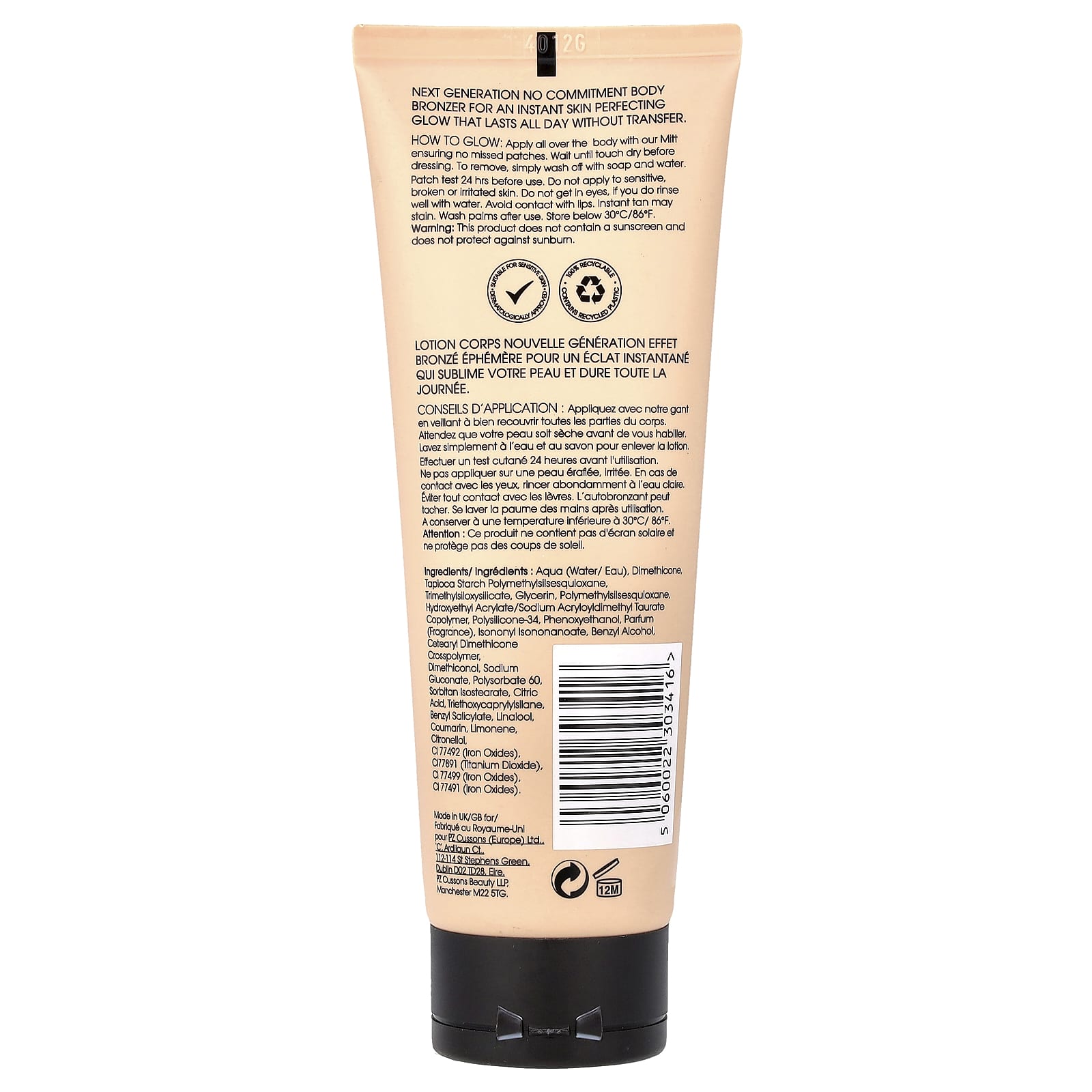 Faça o teste epicutâneo 24 horas antes do uso. Não aplique em pele sensível, ferida ou irritada. Não deixe o produto entrar em contato com os olhos. Se fizer isso, enxágue com bastante água. Evite contato com os lábios. O bronzeado instantâneo pode manchar. Lave as palmas das mãos após o uso. Armazene abaixo de 30 °C/86 °F.