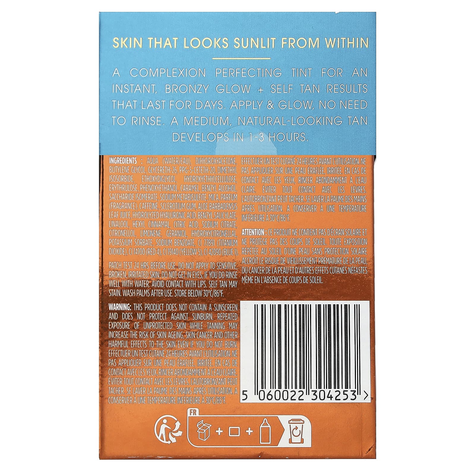 Uma tonalidade que aperfeiçoa a tez para proporcionar resultados instantâneos de brilho bronzeado e autobronzeador que duram dias. Aplique e brilhe, não é necessário enxaguar. Um bronzeado médio e natural se desenvolve em 1 a 3 horas.