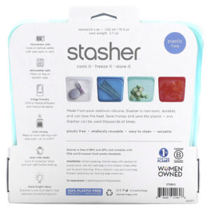 O que você vai esconder na sua stasher? Tudo! Versátil, o stasher é ideal para viagens, merenda escolar, itens para bebês, telefones celulares, maquiagem e muito mais. E, como o stasher não é tóxico e é resistente à temperatura, é perfeito para armazenar e cozinhar alimentos com segurança.