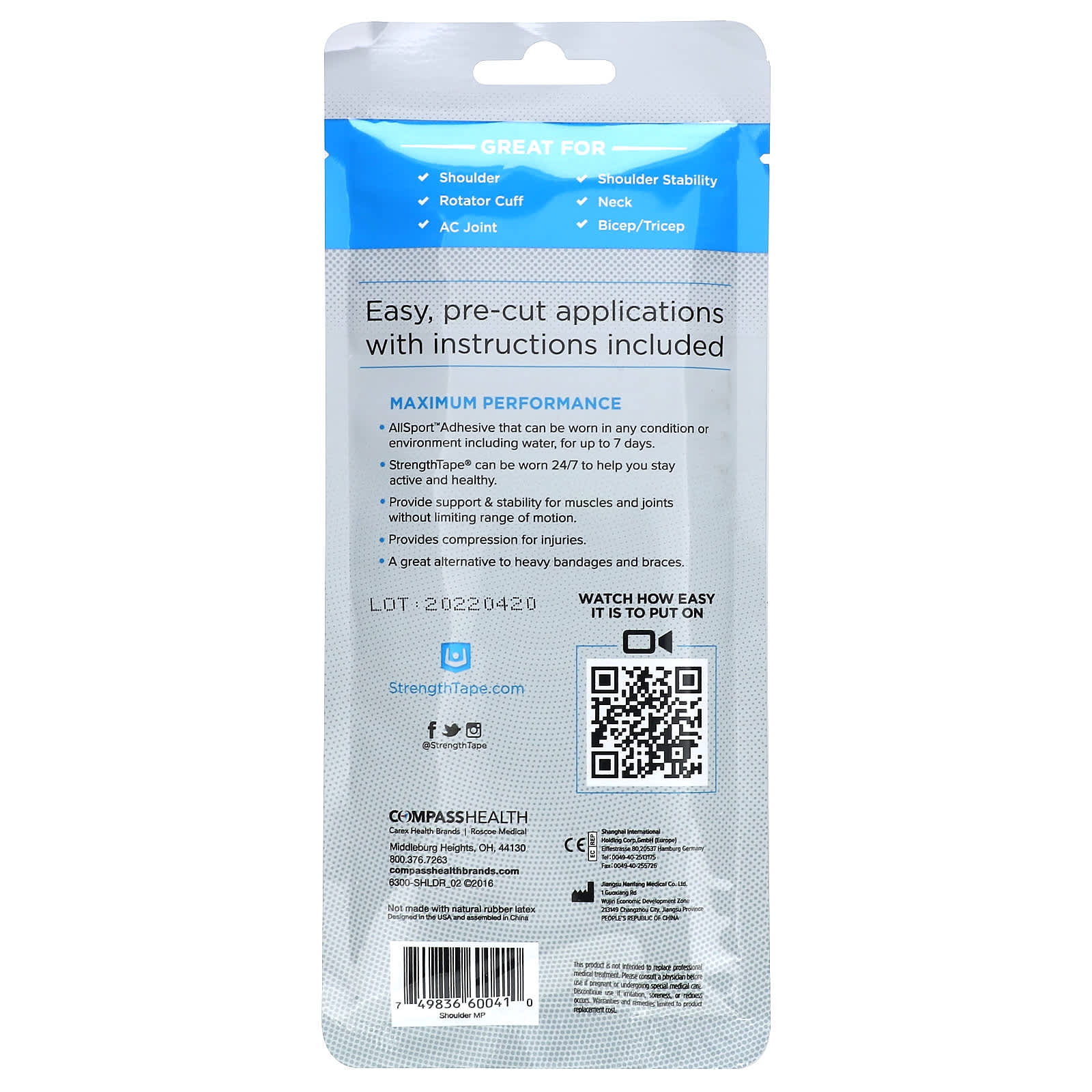 Strengthtape Kit de Fita Kinesiology Ombro 6 Tiras Pré-cortadas – Strengthtape Cuidados Pessoais Armário do Banheiro Primeiros Socorros Suportes, embalagens e fitas.