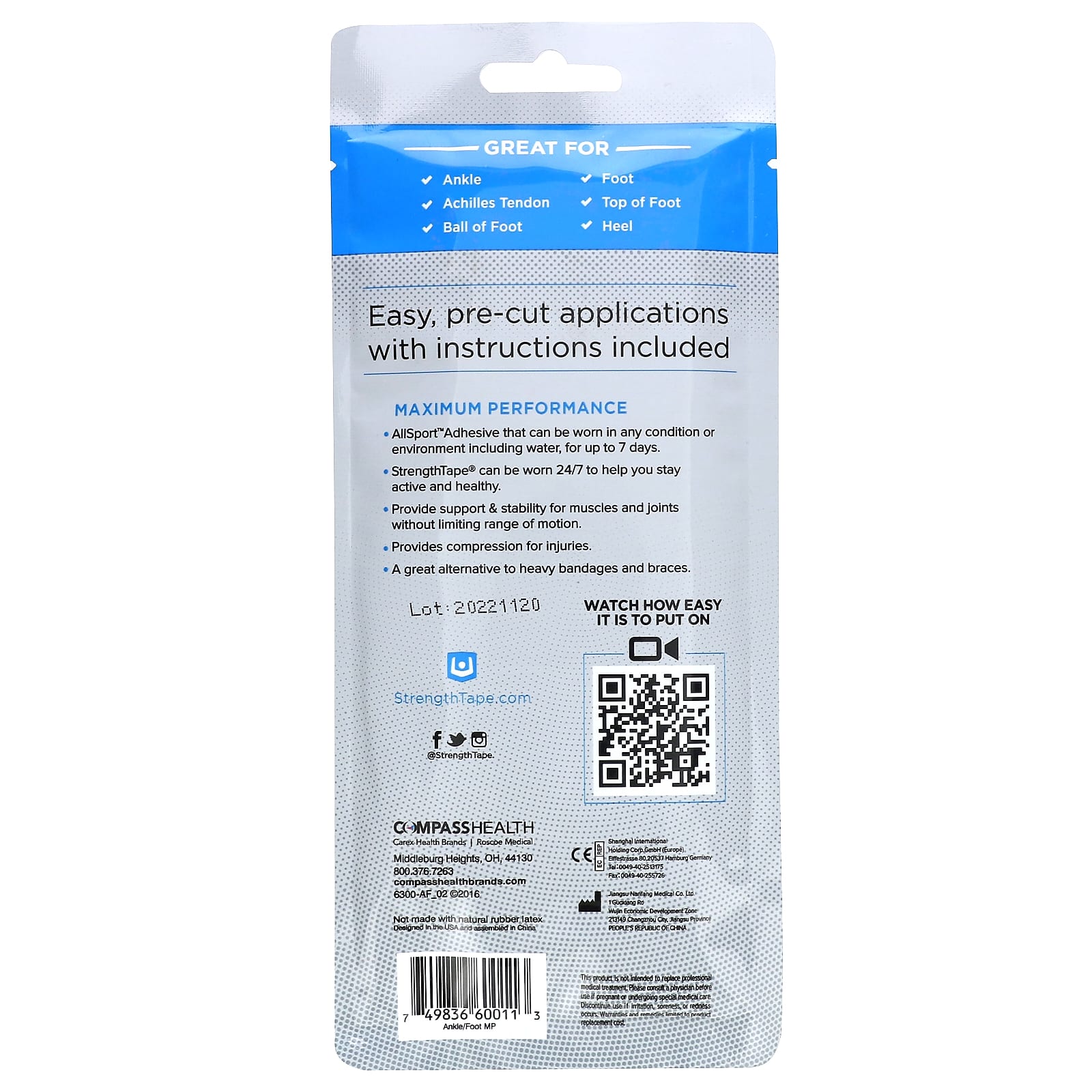 Strengthtape Kit de Fitas Kinesiology Pé e Tornozelo 6 Tiras Pré-cortadas – Strengthtape Cuidados Pessoais Armário do Banheiro Primeiros Socorros Suportes, embalagens e fitas.