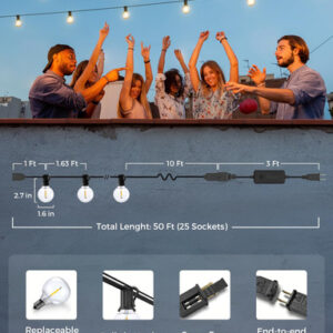 String Lights Xmcosy G40 Smart Dimmable 50 Pés Ao Ar Livre