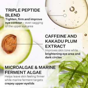 Este sérum para os olhos usa três peptídeos exclusivos que apertam, firmam e iluminam visivelmente toda a área dos olhos.