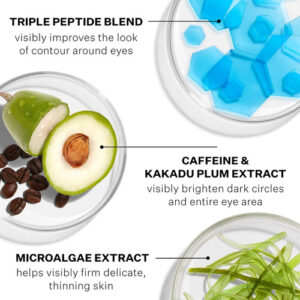 Descubra resultados visíveis ao redor dos olhos com nosso sérum mais vendido, agora aprimorado com o poder de três peptídeos exclusivos que apertam, firmam e iluminam visivelmente toda a área dos olhos. Sua fórmula leve e de rápida absorção oferece uma sensação não pegajosa, proporcionando benefícios às pálpebras superiores e inferiores, incluindo pés de galinha e pálpebras. Ele também possui um aplicador refrescante que massageia suavemente e reduz o inchaço para revitalizar essa área delicada da pele.