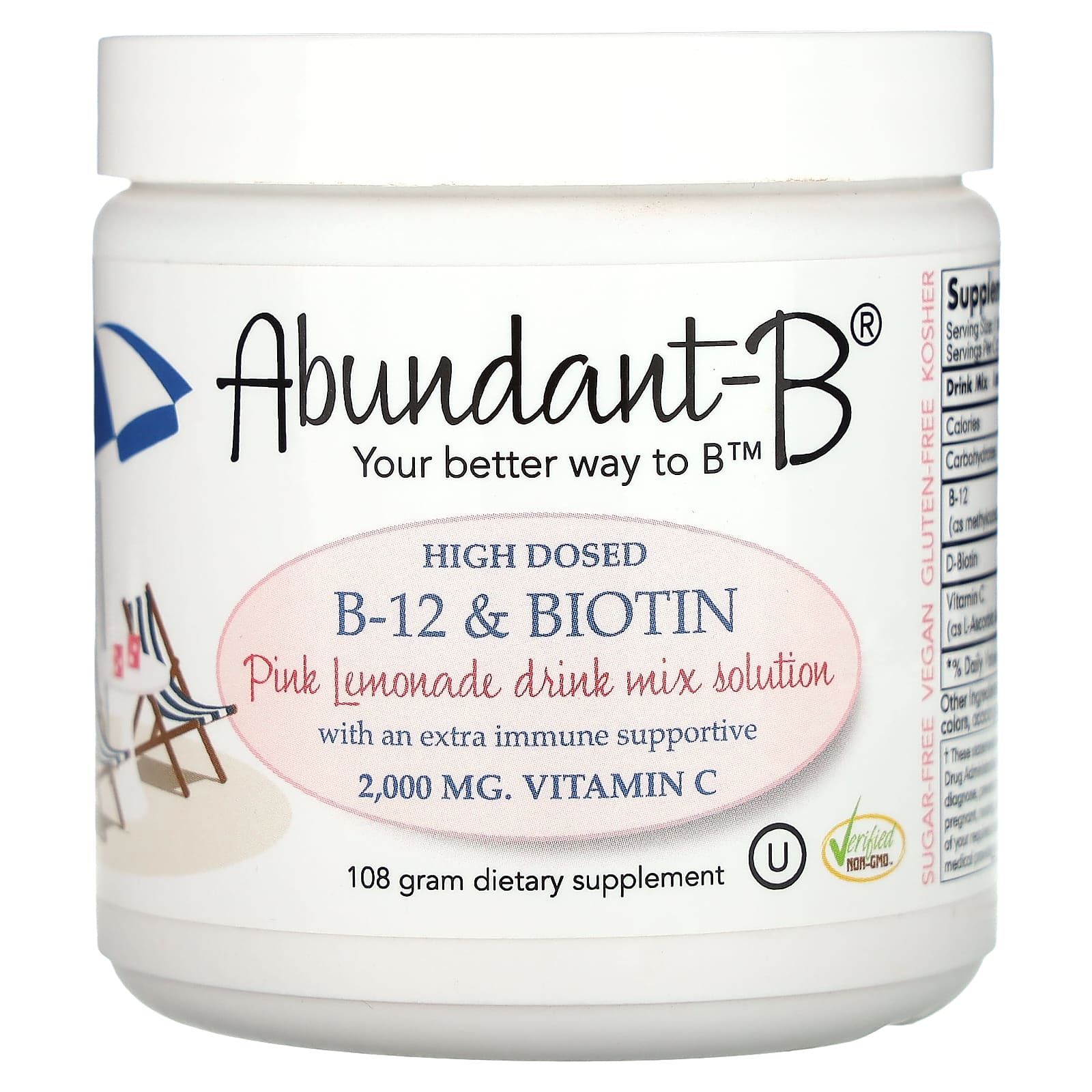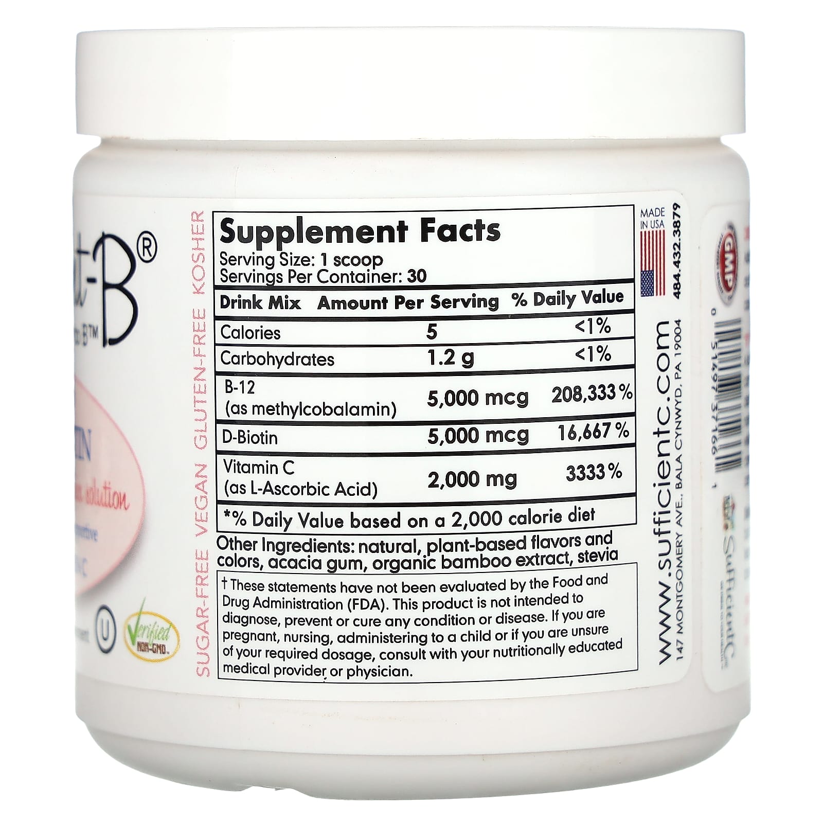 Sufficient C Abundante B-12 em Alta Dose e Mistura para Bebida de Biotina Limonada Rosa 108 g