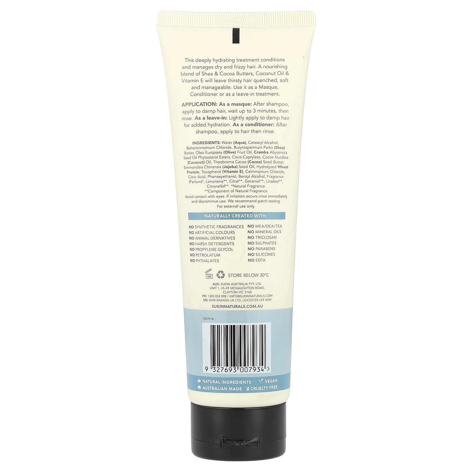 Sukin Cuidados com os Cabelos Máscara Capilar de Restauração Hidratante Tipos de Cabelos Secos 200 ml (676 fl oz) – Sukin Banho e Cuidados Pessoais Cabelos Tratamentos capilares Máscaras Capilares Beleza Beleza por Ingrediente Cuidado para a pele com Vitamina E.