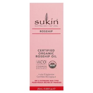 Sukin Óleo de Rosa-Mosqueta Orgânico Certificado Peles Secas e Irritadas 25 ml (085 fl oz) – Sukin Cuidados Pessoais Cuidados com o Corpo Óleos corporais e de massagem Óleo de Rosa-Mosqueta.