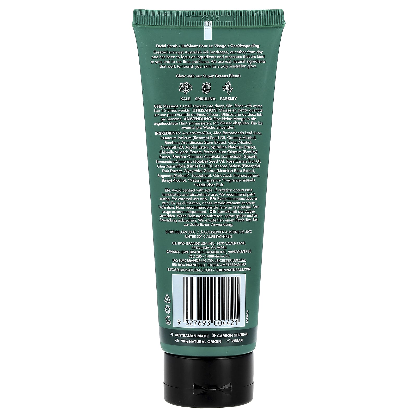 Sukin Super Greens Esfoliante Facial Desintoxicante Pele Normal a Seca 125 ml (423 fl oz) – Sukin Beleza Limpeza Facial Esfoliantes Faciais.