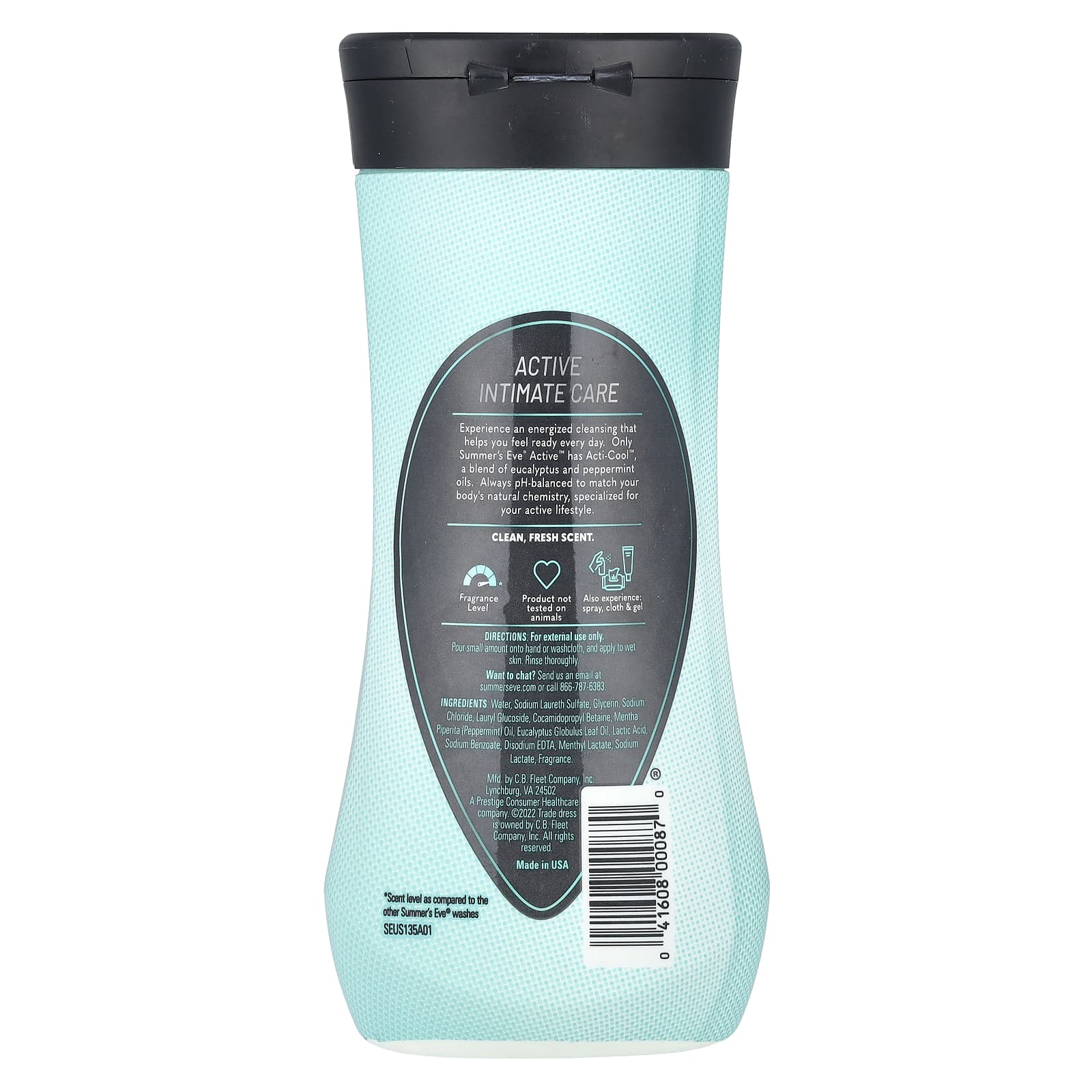 Apenas Summer’s Eve® Active contém Acti-Cool ™, uma mistura de óleos de eucalipto e hortelã-pimenta. Summer’s Eve® Active tem pH equilibrado, é feito sem corantes, álcool e parabenos e foi testado por ginecologistas.
