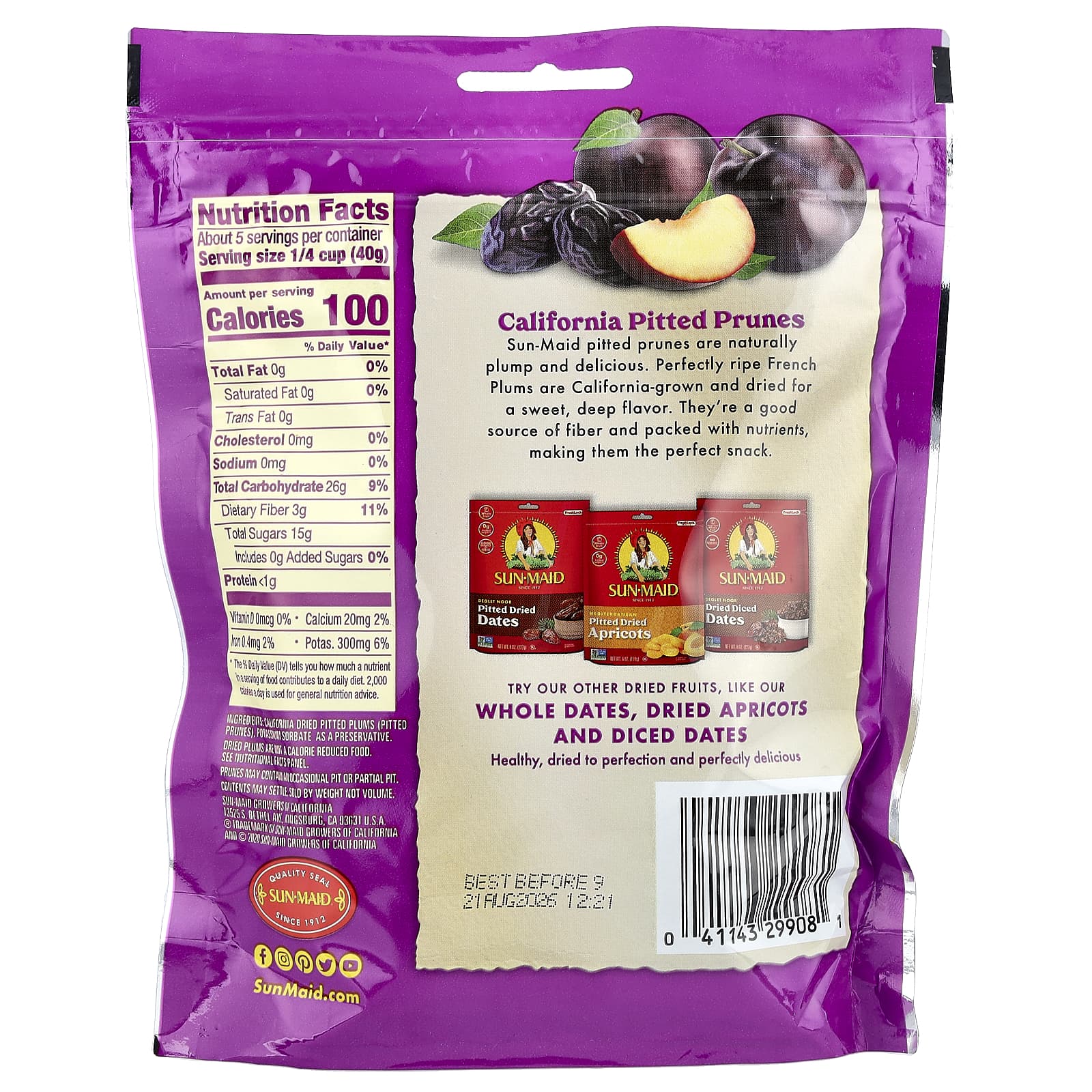 As ameixas sem caroço da Sun-Maid são naturalmente volumosas e deliciosas. As Ameixas Francesas Perfeitamente maduras são cultivadas na Califórnia e secas para proporcionar um sabor doce e intenso. Elas são uma boa fonte de fibras e repletas de nutrientes, o que faz delas um lanche perfeito.