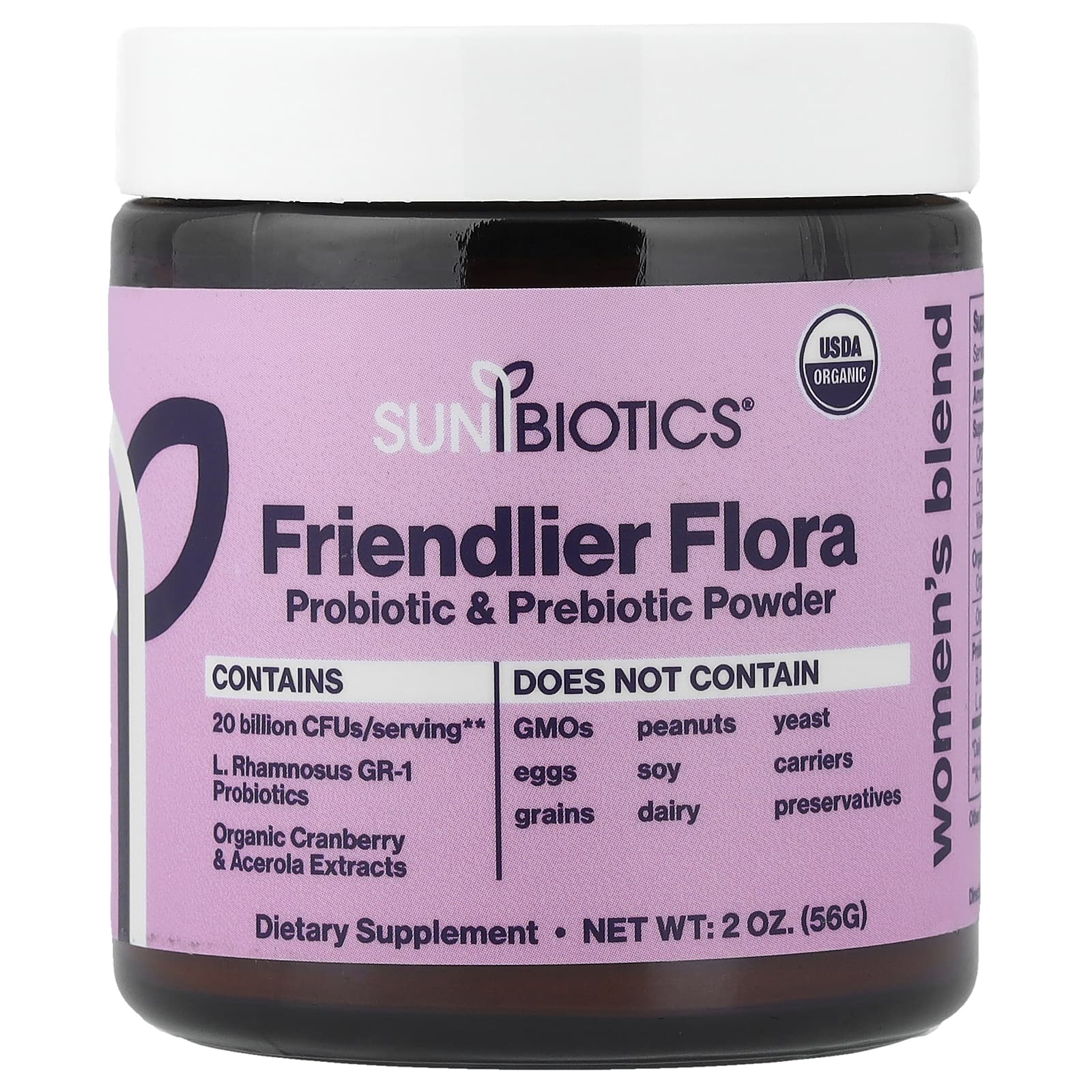 Sunbiotics Friendlyler Flora Mistura para Mulheres Probiótico e Prebiótico em Pó 56 g (2 oz) – Sunbiotics Suplementos Saúde Intestinal Probióticos Saúde da Mulher.