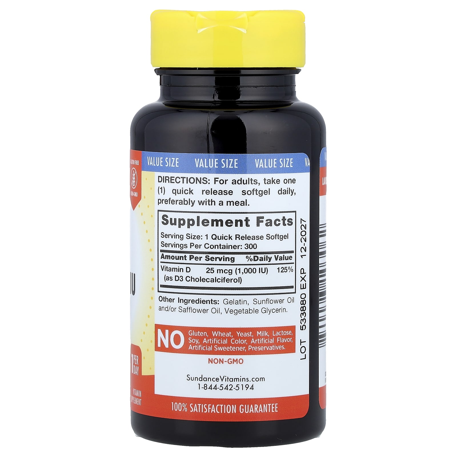 Sundance Vitamins Vitamina D3 de Alta Potência 25 mcg (1.000 UI) 300 Cápsulas Softgel de Liberação Rápida – Sundance Suplementos Vitaminas Vitamina D.