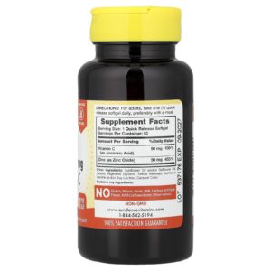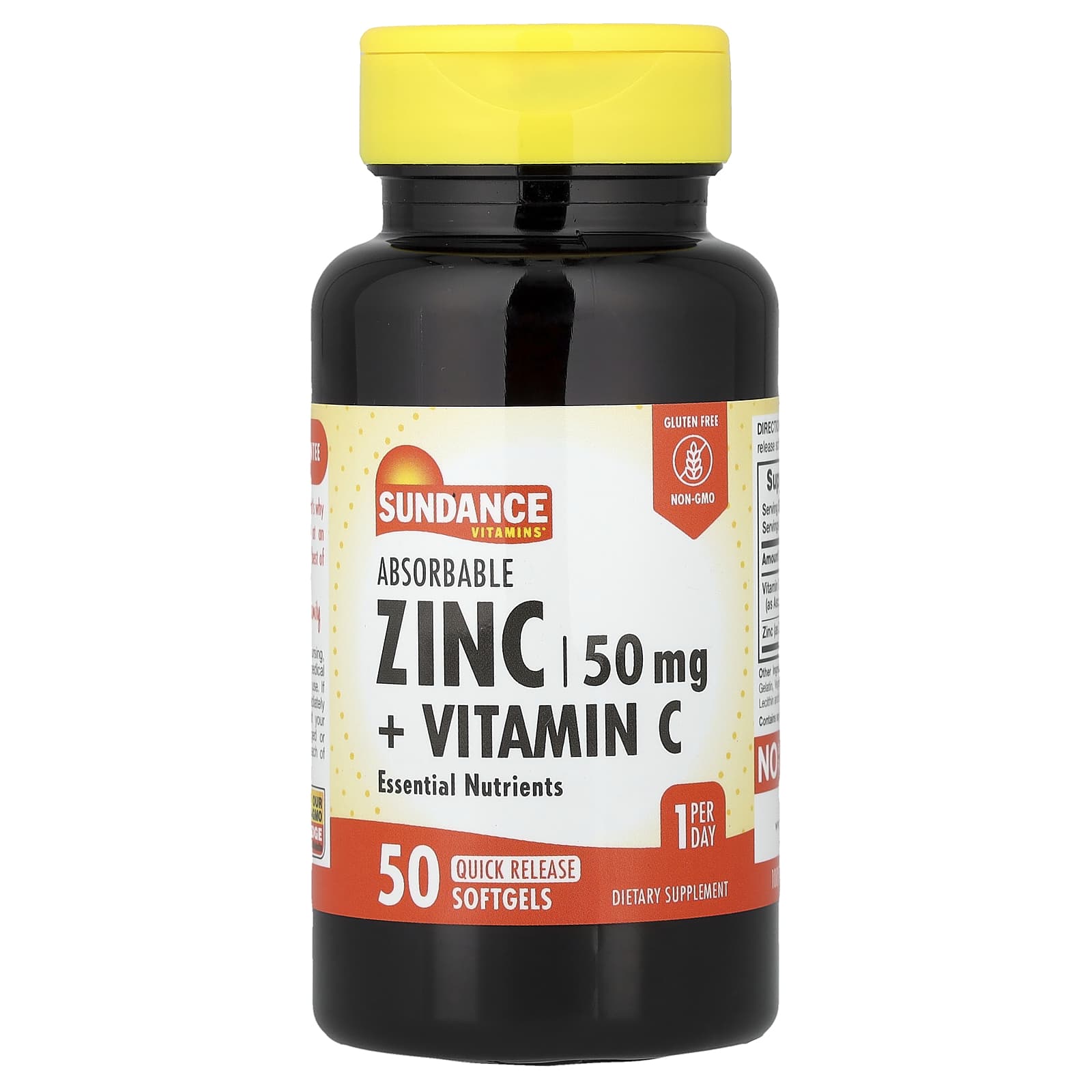 Sundance Vitamins Zinco + Vitamina C Absorvível 50 Cápsulas Softgel de Liberação Rápida – Sundance Suplementos Minerais Zinco Vitaminas Vitamina C.
