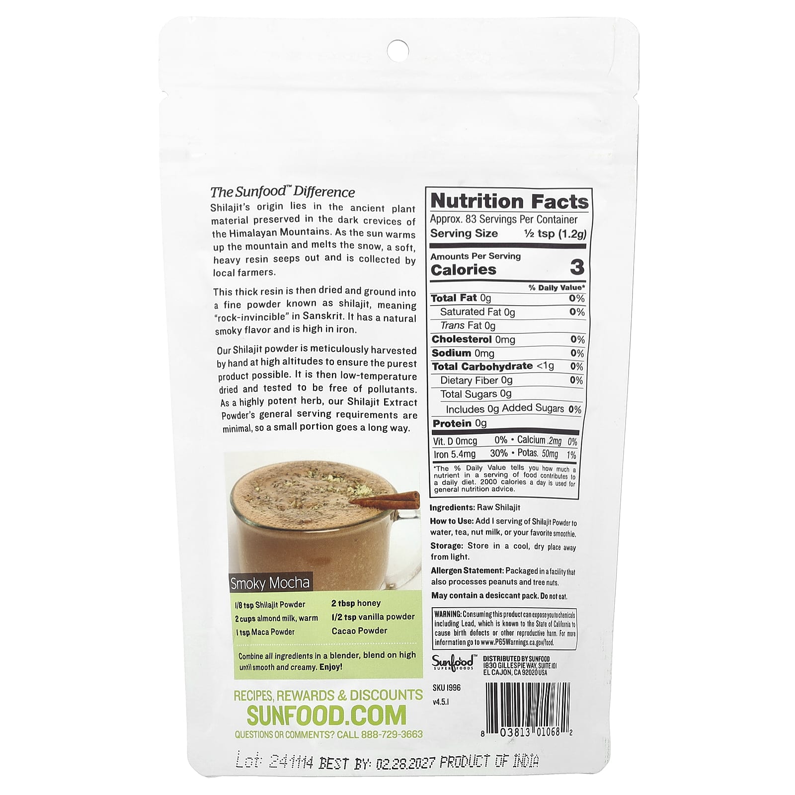 Sunfood Shilajit Cru em Pó 100 g (35 oz) – Sunfood Suplementos Ervas Ervas Ayurvédicas Shilajit.