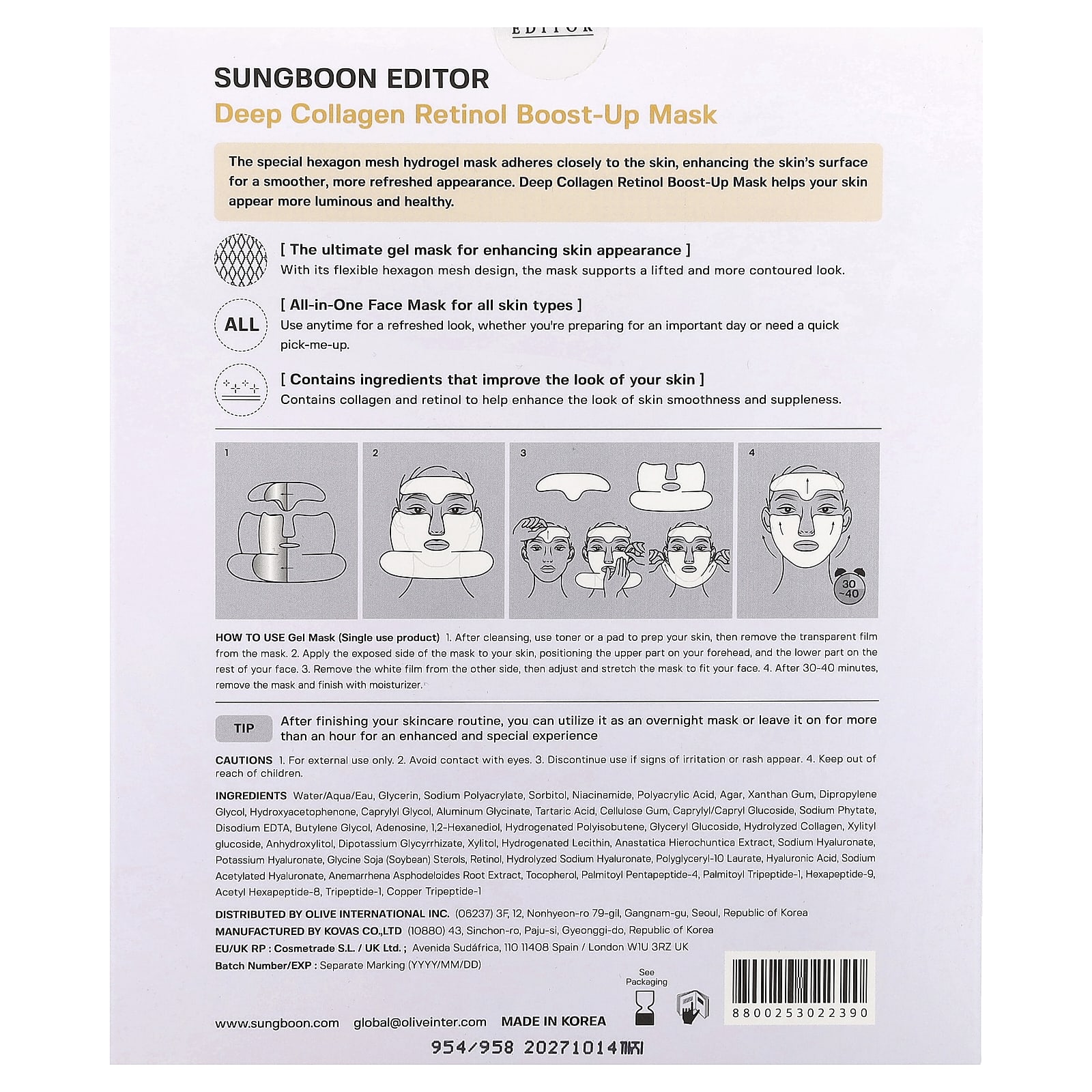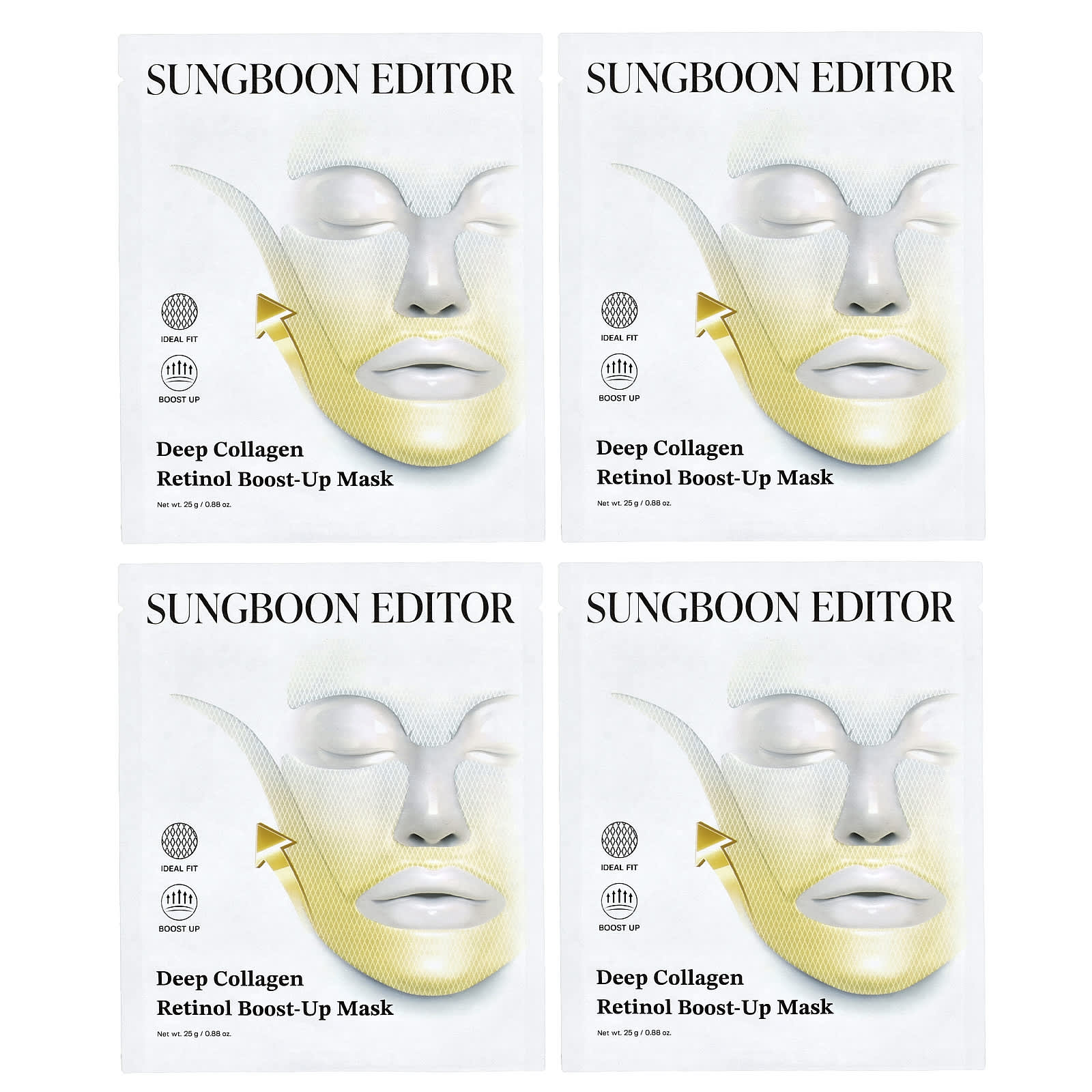 Sungboon Editor Máscara de Beleza Boost-Up de Retinol para Colágeno Profundo 4 Folhas 25 g (088 oz) Cada – Sungboon Editor Beleza Máscaras Faciais de Beleza Máscaras Faciais Máscaras em folha K-Beauty.