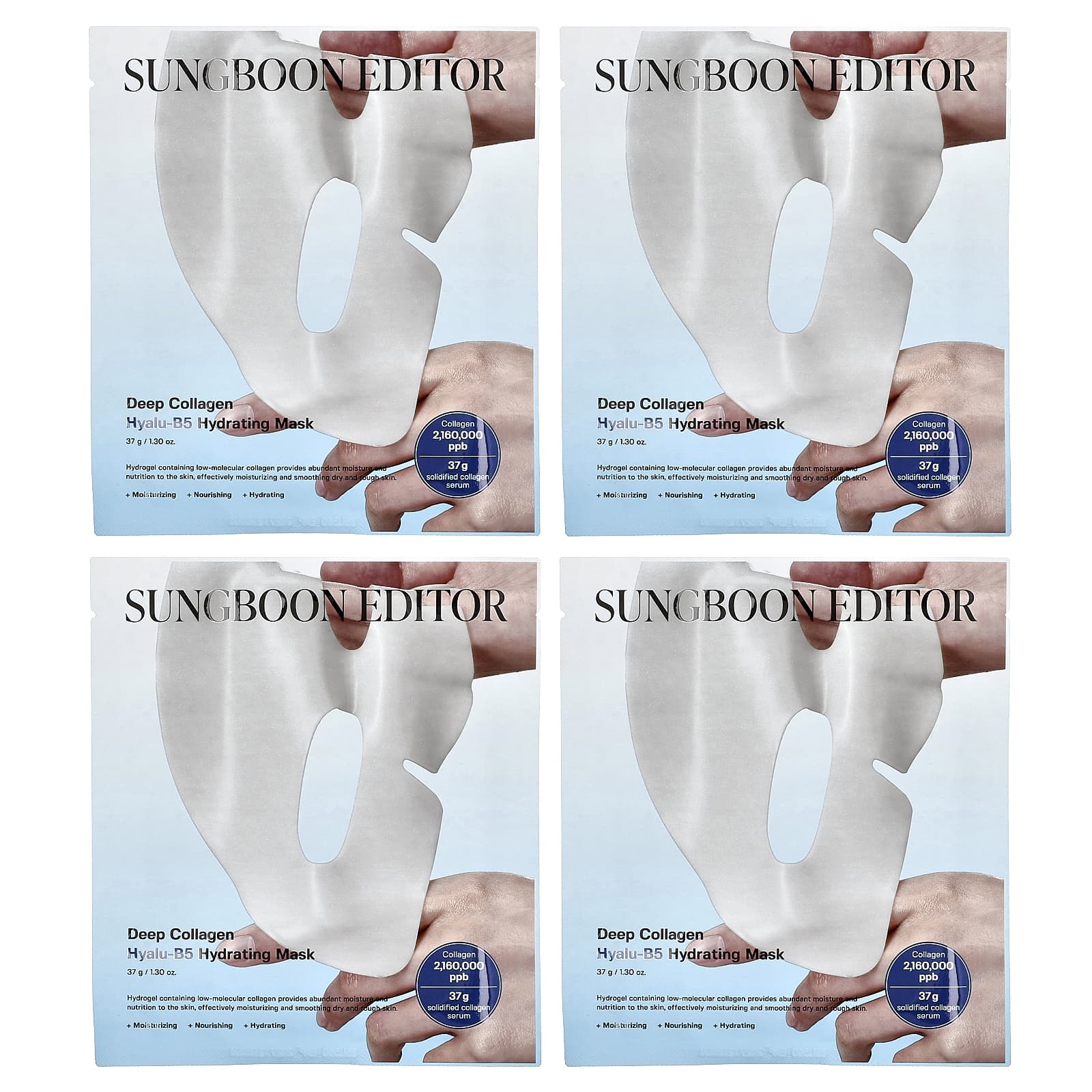 Sungboon Editor Máscara Hidratante de Beleza Hyalu-B5 Colágeno Profundo Pacote com 4 Unidades 37 g (130 oz) Cada – Sungboon Editor Beleza Máscaras Faciais de Beleza Máscaras Faciais Máscaras em folha K-Beauty.