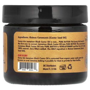 O Óleo de Rícino Preto Jamaicano da Sunny Isle agora é… Manteiga Pura! A marca Sunny Isle é a primeira a converter Óleo de Rícino Preto Jamaicano em Manteiga Pura! A conversão do Óleo de Rícino Preto Jamaicano em Manteiga Pura é Revolucionária e a primeira do tipo. 100% natural. Sem adição de excipientes. O único ingrediente é Ricinus communis (Óleo da Semente de Rícino).